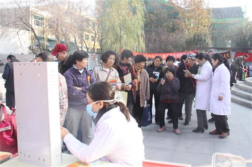 (济南眼科医院)组织医疗团队来到甸柳小区历下文化广场,参加了由市卫计委举办的“服务百姓健康”社区义诊活动。