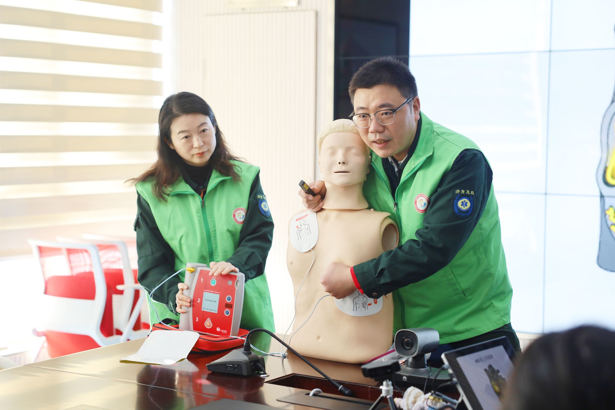 济南市急救中心团支部书记讲解AED使用方法