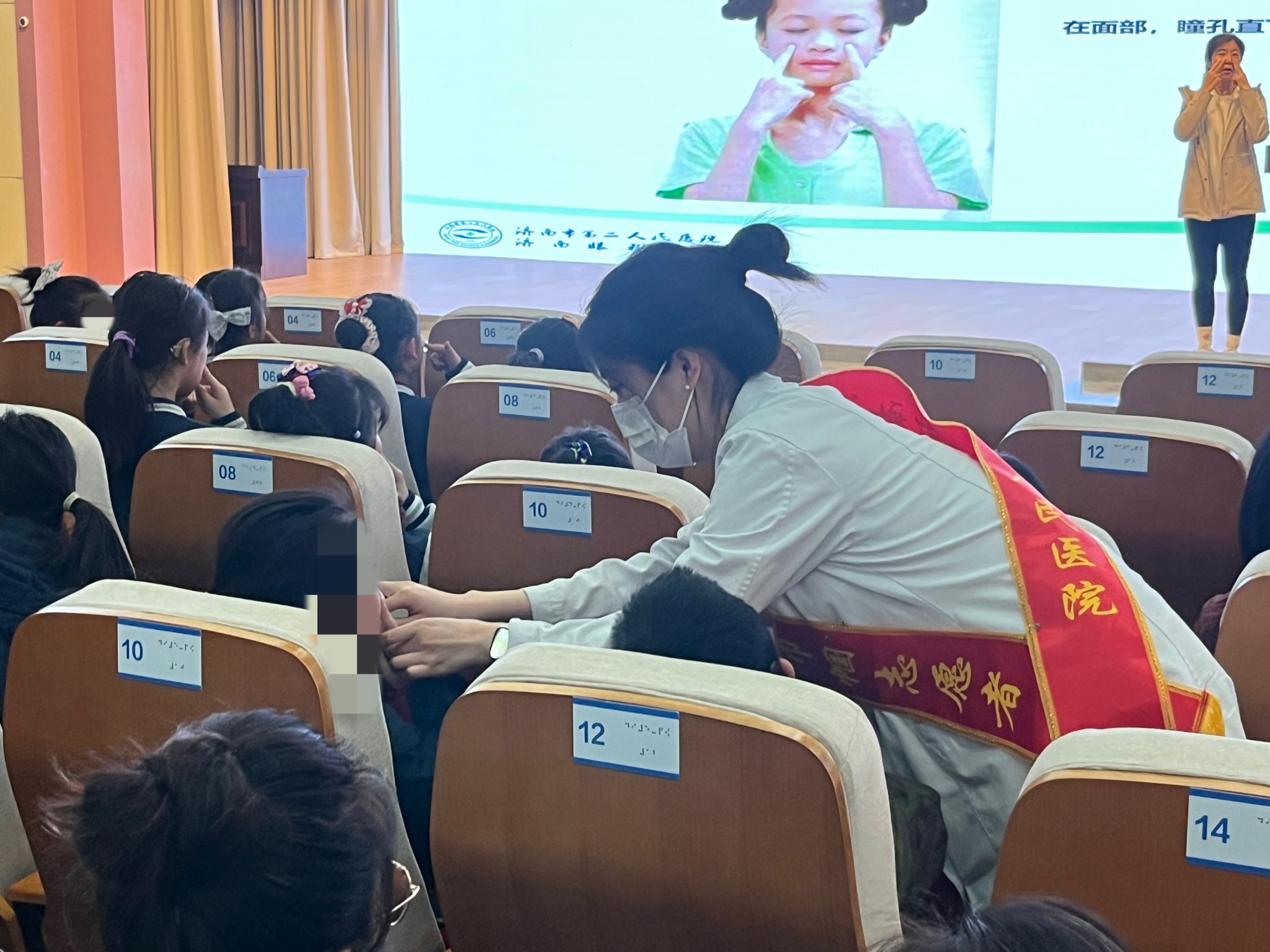 )“护瞳行动”志愿服务队走进济南市特殊教育中心,为刚刚开学的师生带来了一场别开生面的近视防控培训。此次“复学第一课”旨在普及眼健康知识,帮助学生们树立爱眼护眼意识,养成良好的用眼习惯。