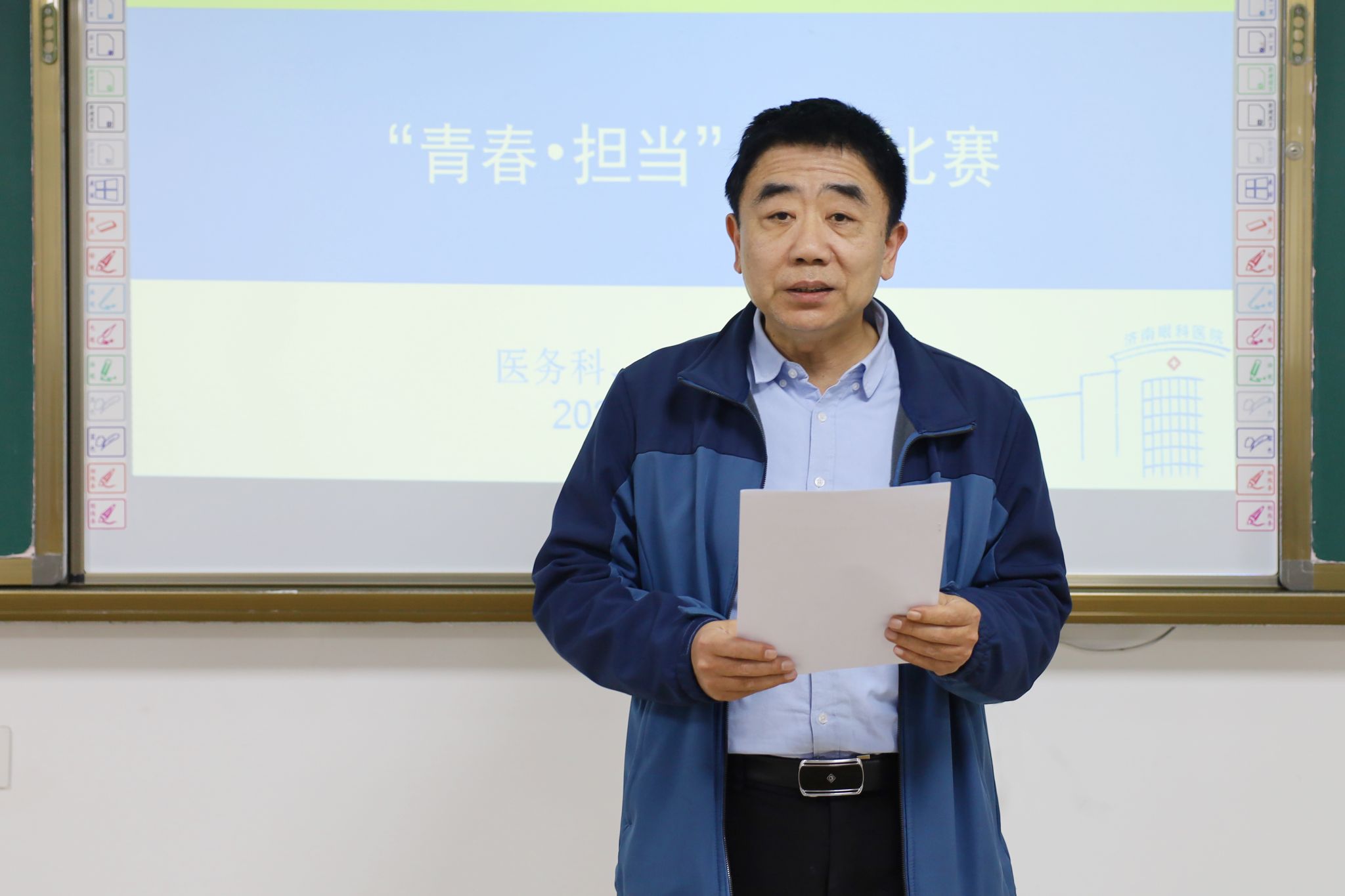 副院长王旭致辞。他表示:作为新时代的青年医护工作者,肩负着救死扶伤的神圣使命,承载着推动医疗卫生事业高质量发展的光荣责任,是医院美好明天的缔造者。他希望广大团员和青年朋友们以本次宣讲比赛为契机,进一步增强责任感和使命感,能够在学习中提升自我、在实践中锻炼成长,不断提高自身的专业素养和综合能力,自觉把个人的成长进步和医院发展紧密联系在一起,敢于担当、勇于作为,在医院的发展大局中贡献自己的智慧和力量。