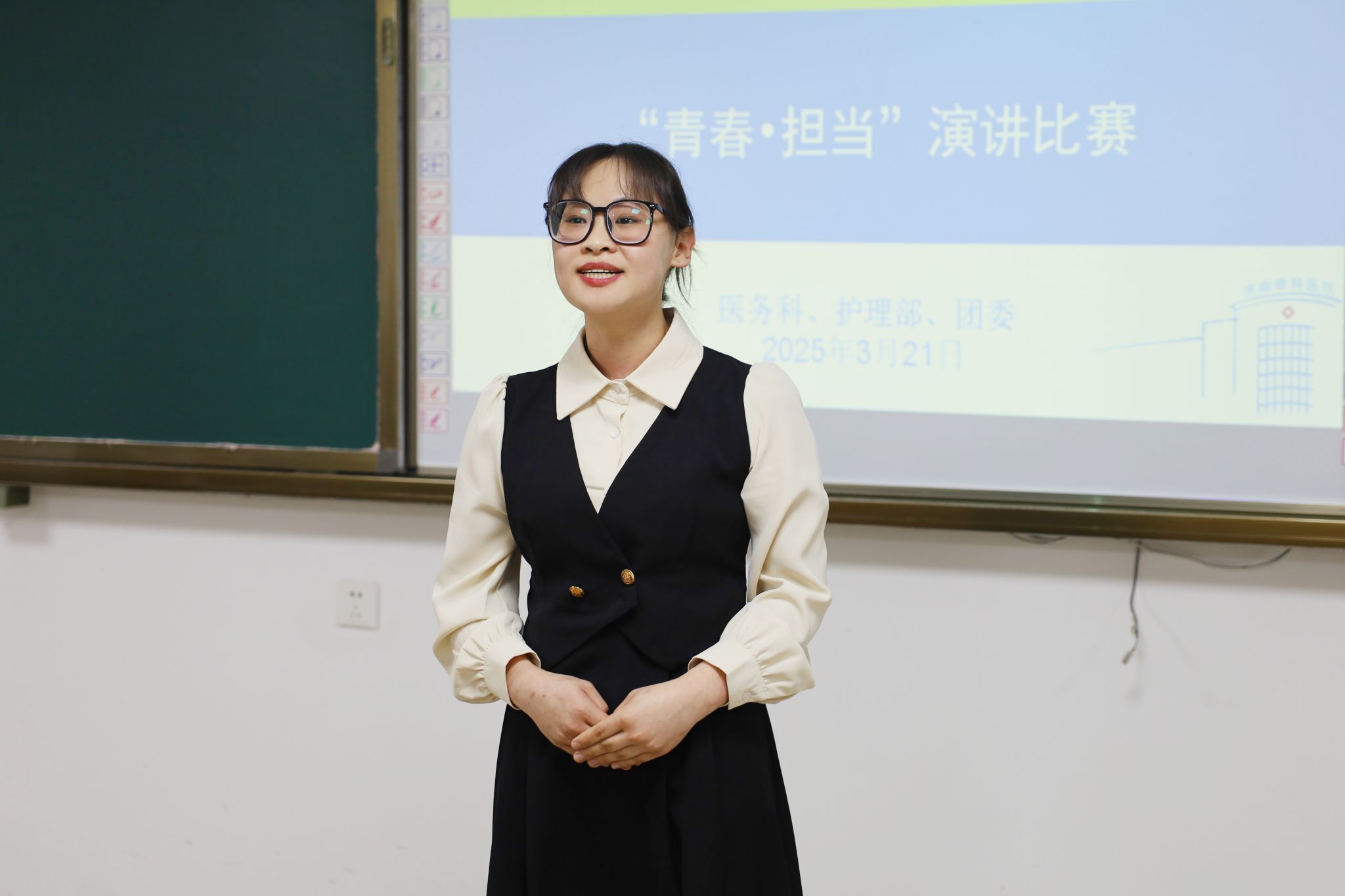 )团委联合医务科、护理部举办以“青春•担当”为主题的青年宣讲比赛。医院副院长王旭、纪委书记刘伟、行政科室负责人、护士长、各团支部书记及团员青年代表参加活动。经过激烈的角逐,最终评选出一等奖2名、二等奖3名、三等奖5名以及优秀奖9名。
