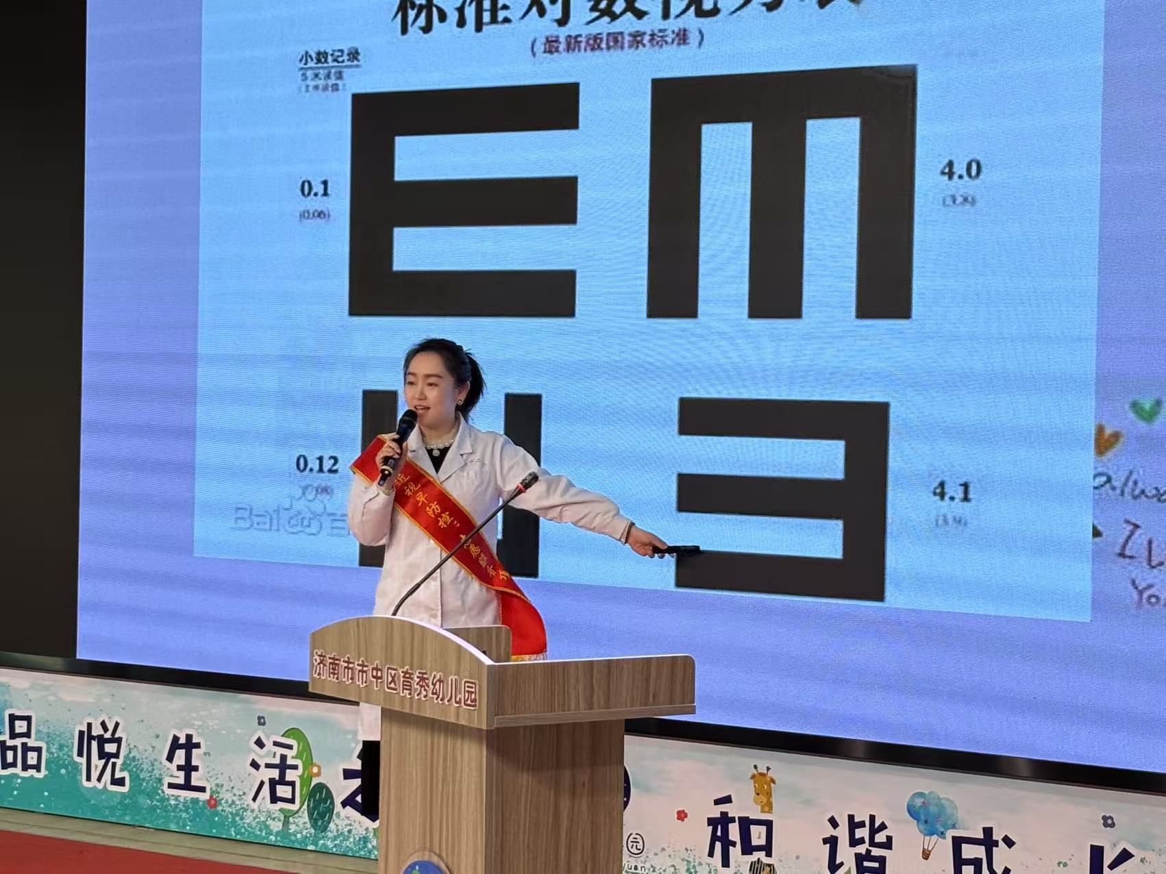 )走进济南市市中区育秀幼儿园开展“近视早防控”青年志愿服务活动。