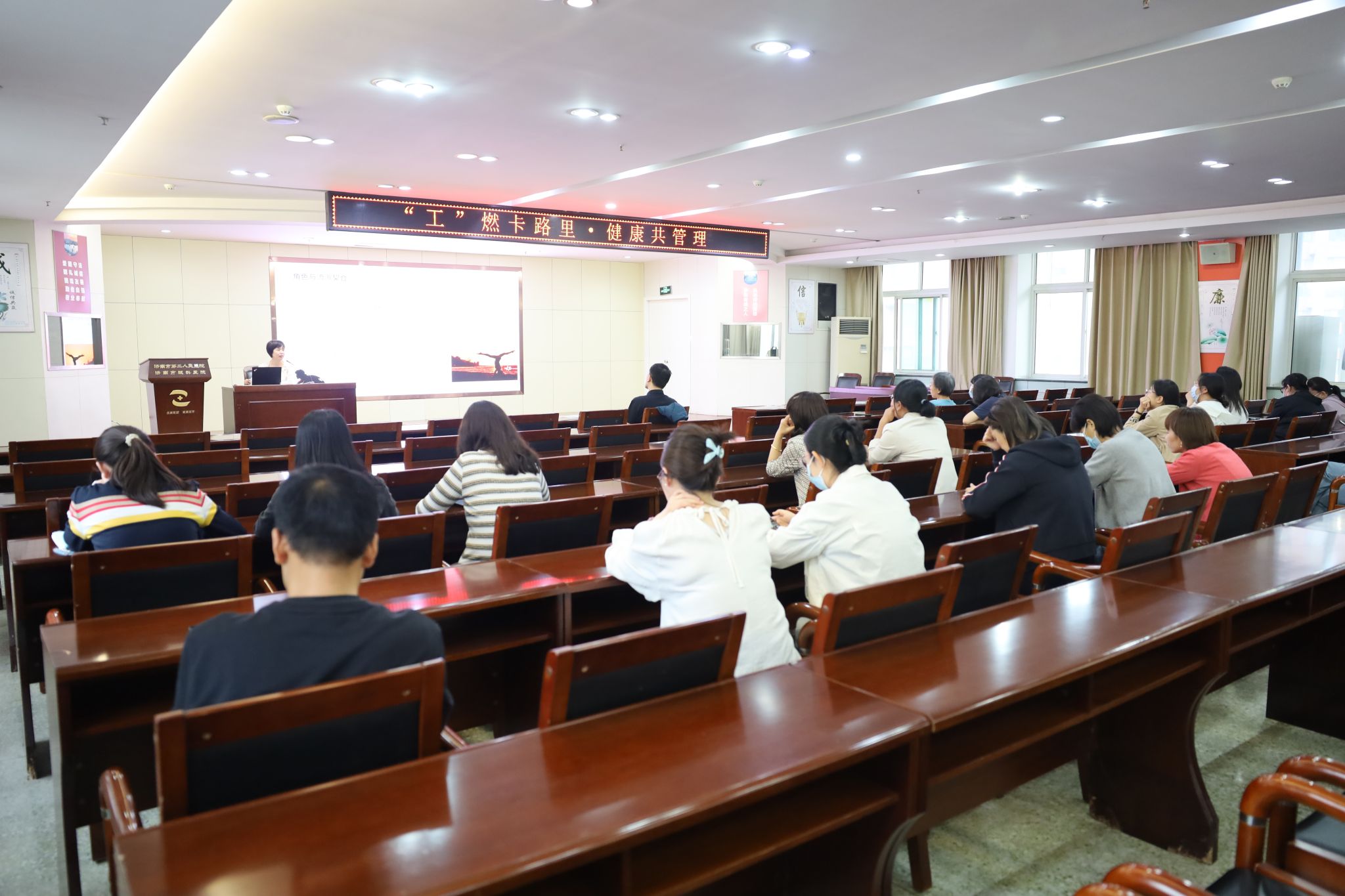 )在门诊7楼会议室开展第五期“工”燃卡路里·健康共管理活动,以“瑜伽—提升健康水平和身心状态”为题,为50余名参与职工带来了一场别开生面的健康之旅,为健康共管理系列活动画上圆满句号。