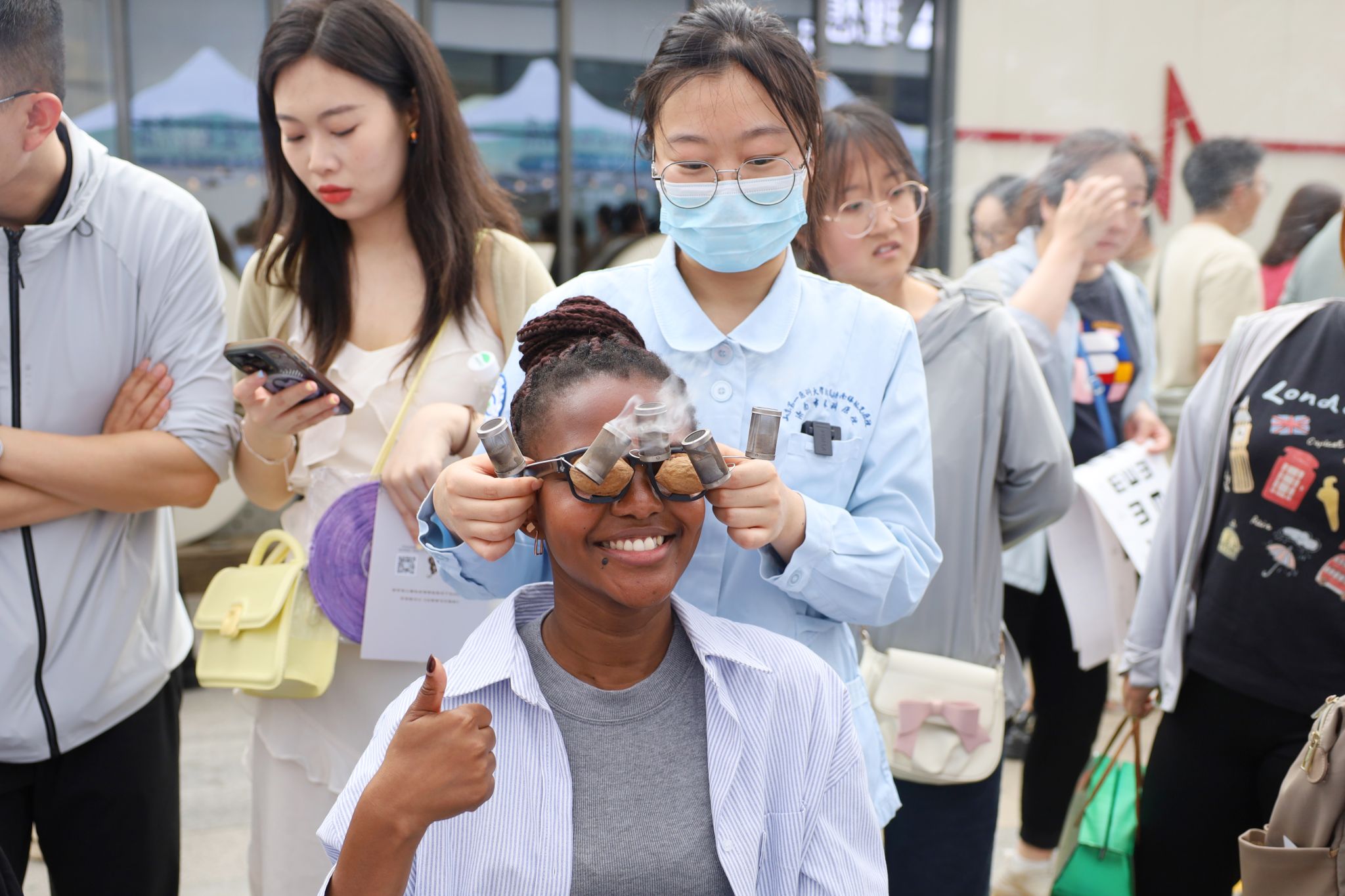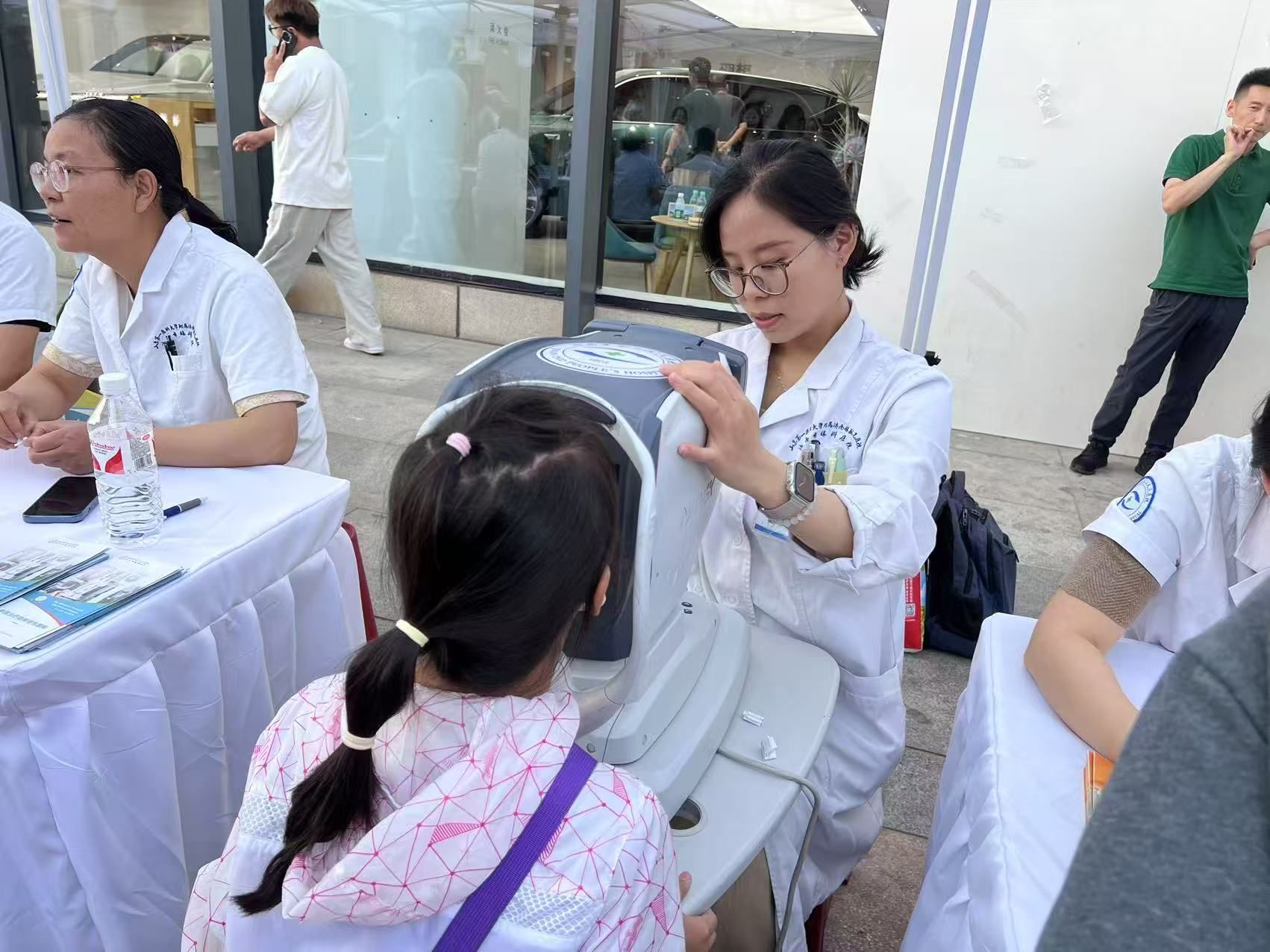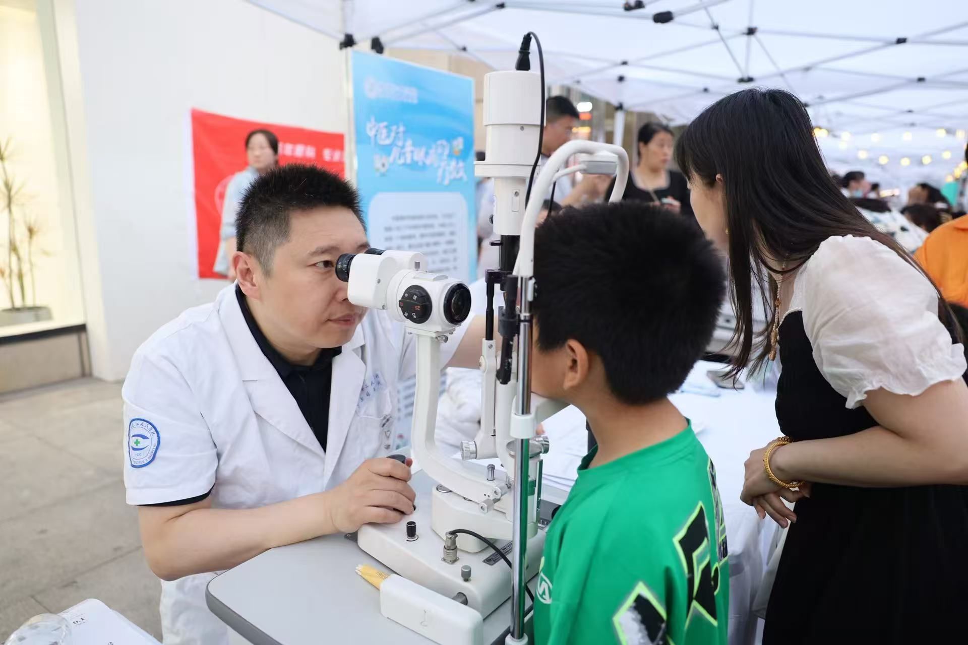义诊台前排起长队。医院中医眼科专家通过“耳穴压豆”“核桃灸”等传统中医治疗方式,吸引群众体验,传播国学知识。中医专家们还通过眼保健操指导、健康宣教等形式,现场指导正确的眼穴位按摩手法,助力改善眼疲劳。眼科专家团队还携带眼科专业设备为群众提供了眼科疾病基础检查,尤其是针对儿童近视等高发眼病,提供了专业诊疗建议。医院专家团队还现场为家长解答儿童用眼习惯、视力保护等疑问,帮助家长树立“早预防、早干预”意识。