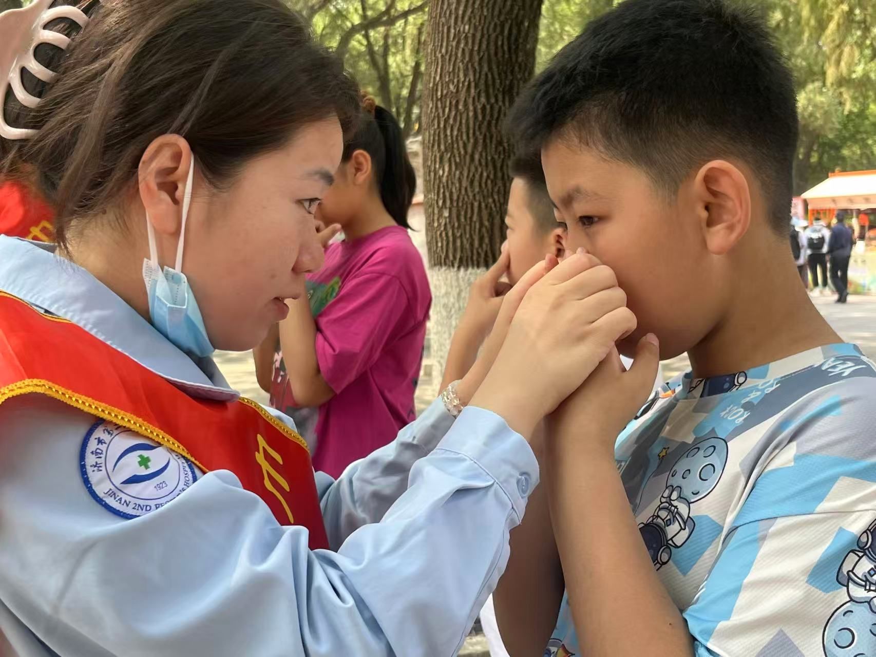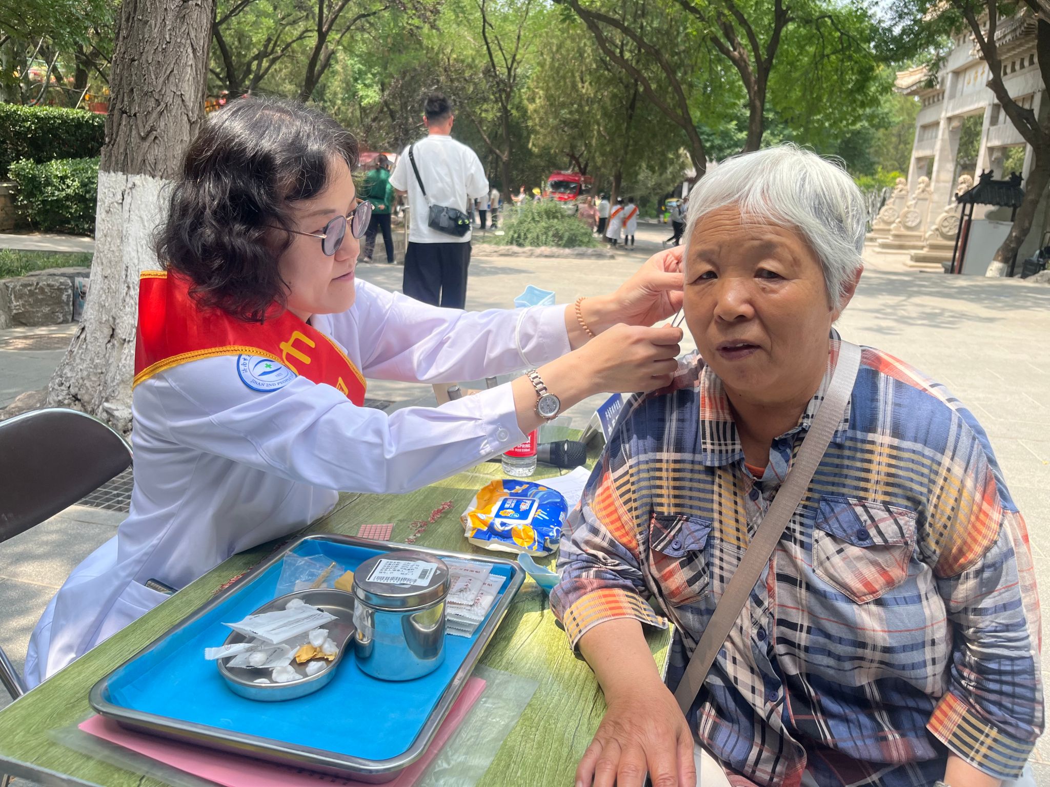 )行政党支部和眼科第二党支部联合行动,在济南千佛山公园精心组织了一场别开生面的主题党日健康义诊活动。