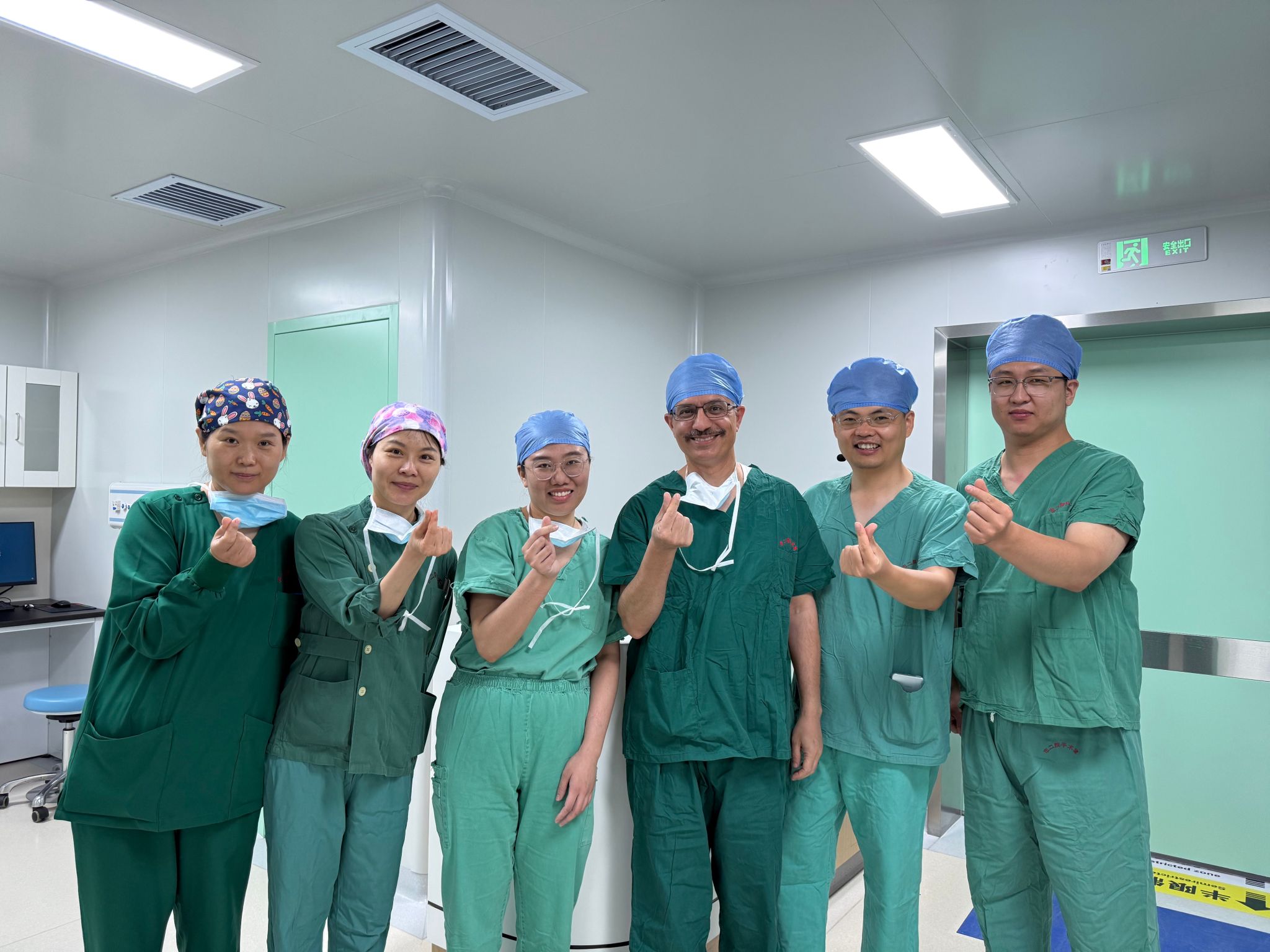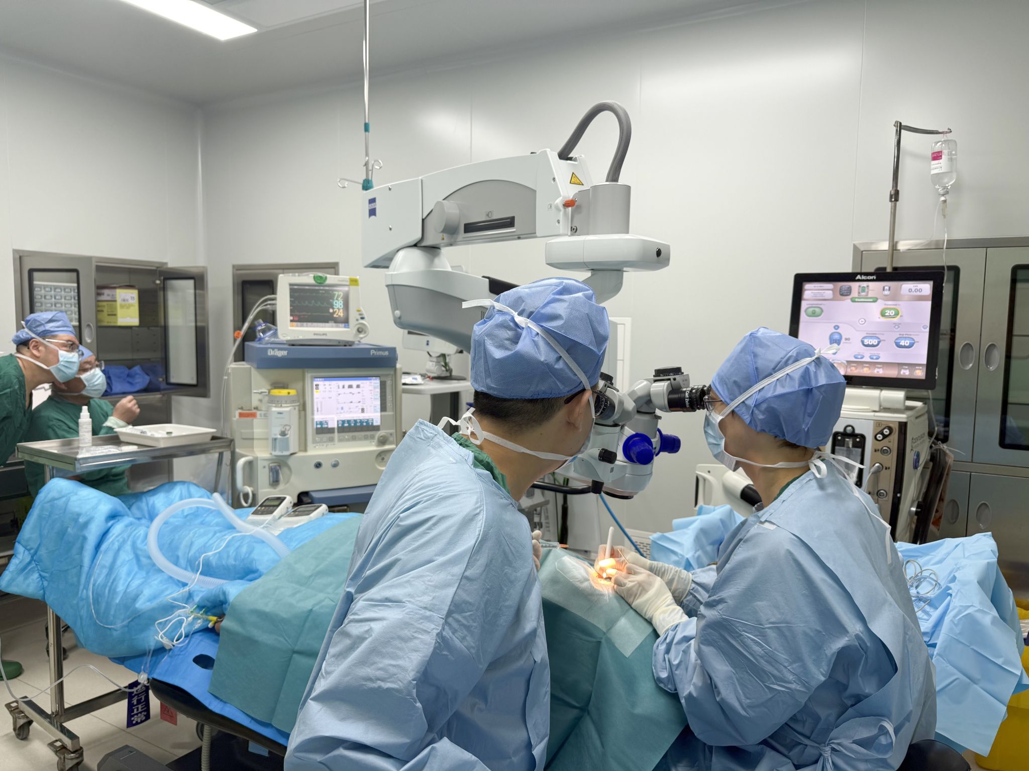 )为就诊患者提供全程双语翻译服务,中美医务人员耐心解答患者疑问,提供个性化诊疗方案。在手术室里,外方专家与中方医生密切配合,共同参与复杂眼科手术,交流分享国际先进手术技巧和各自经验。