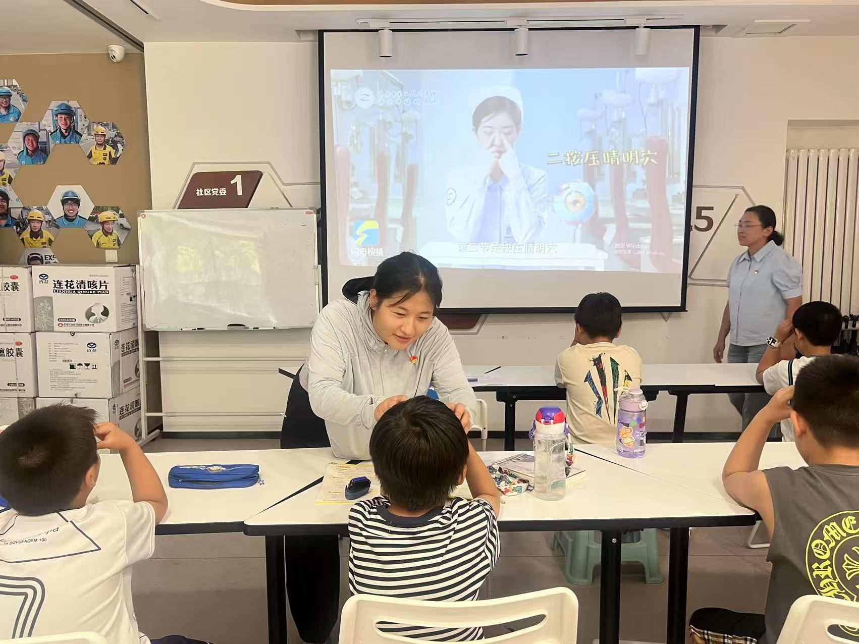 随后,医护人员耐心地指导小朋友们学做眼保健操。从穴位的定位到按摩的手法和力度,医护人员一步步示范,手把手纠正。小朋友们学得有模有样,认真地跟着节奏按压穴位。“原来做眼保健操有这么多讲究,以后我一定会每天认真做。”一位小朋友做完眼保健操后说道。