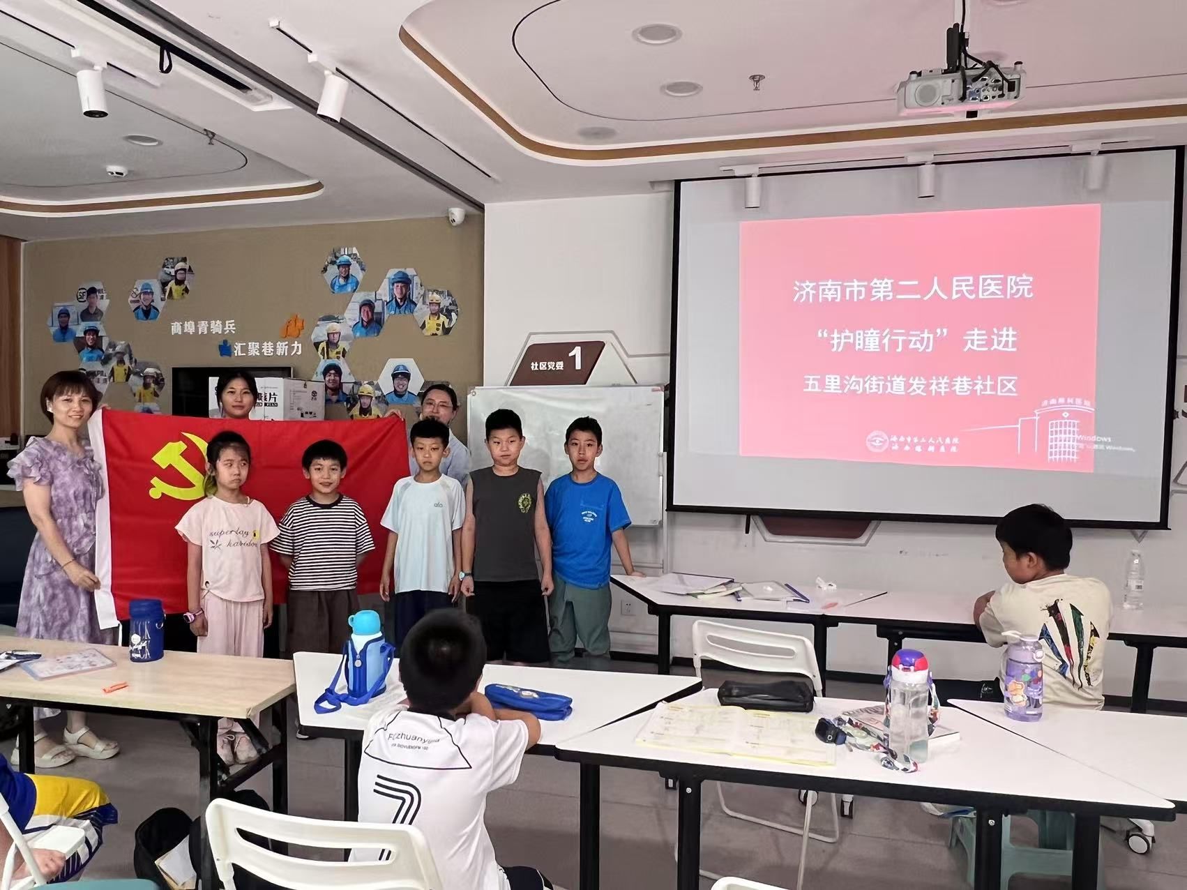 )门诊党支部与槐荫区五里沟街道办事处携手开展了“双报到”活动。此次活动聚焦社区儿童眼健康,通过“爱眼小课堂”和眼保健操教学,为社区托管班的小朋友们送上了一份珍贵的暑期健康礼物。