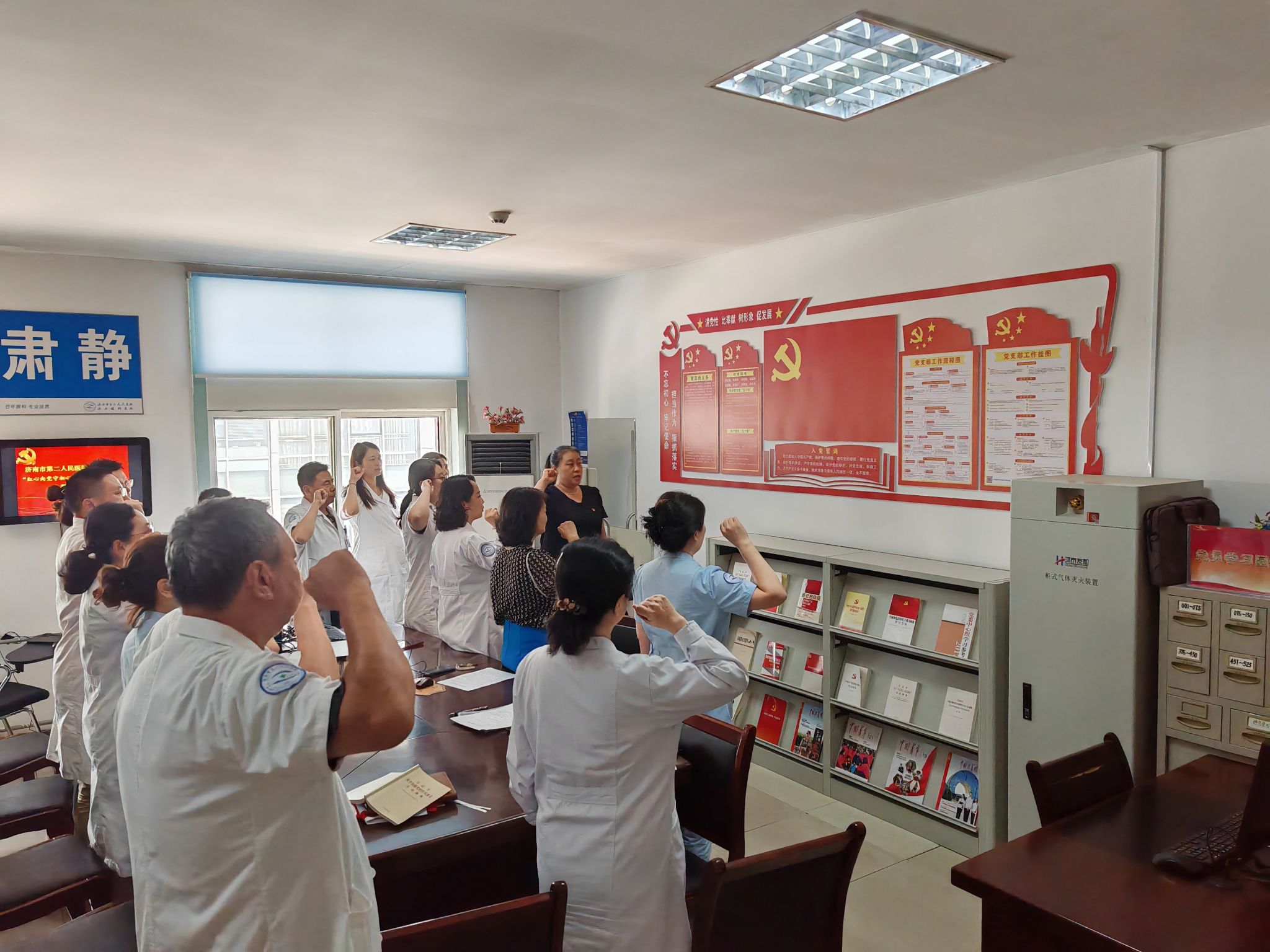 )门诊党支部组织开展了“红心向党守初心,光明服务践使命”主题党日活动。通过专题学习与实践活动相结合,进一步强化党员作风建设,践行服务宗旨。