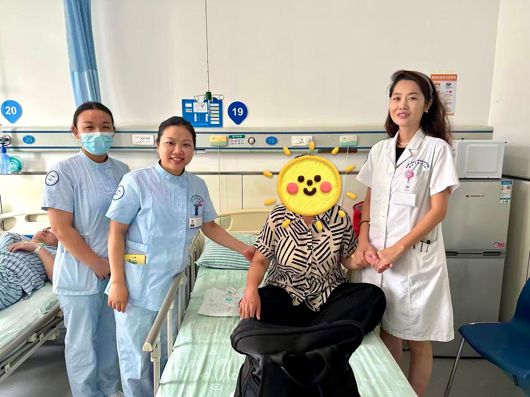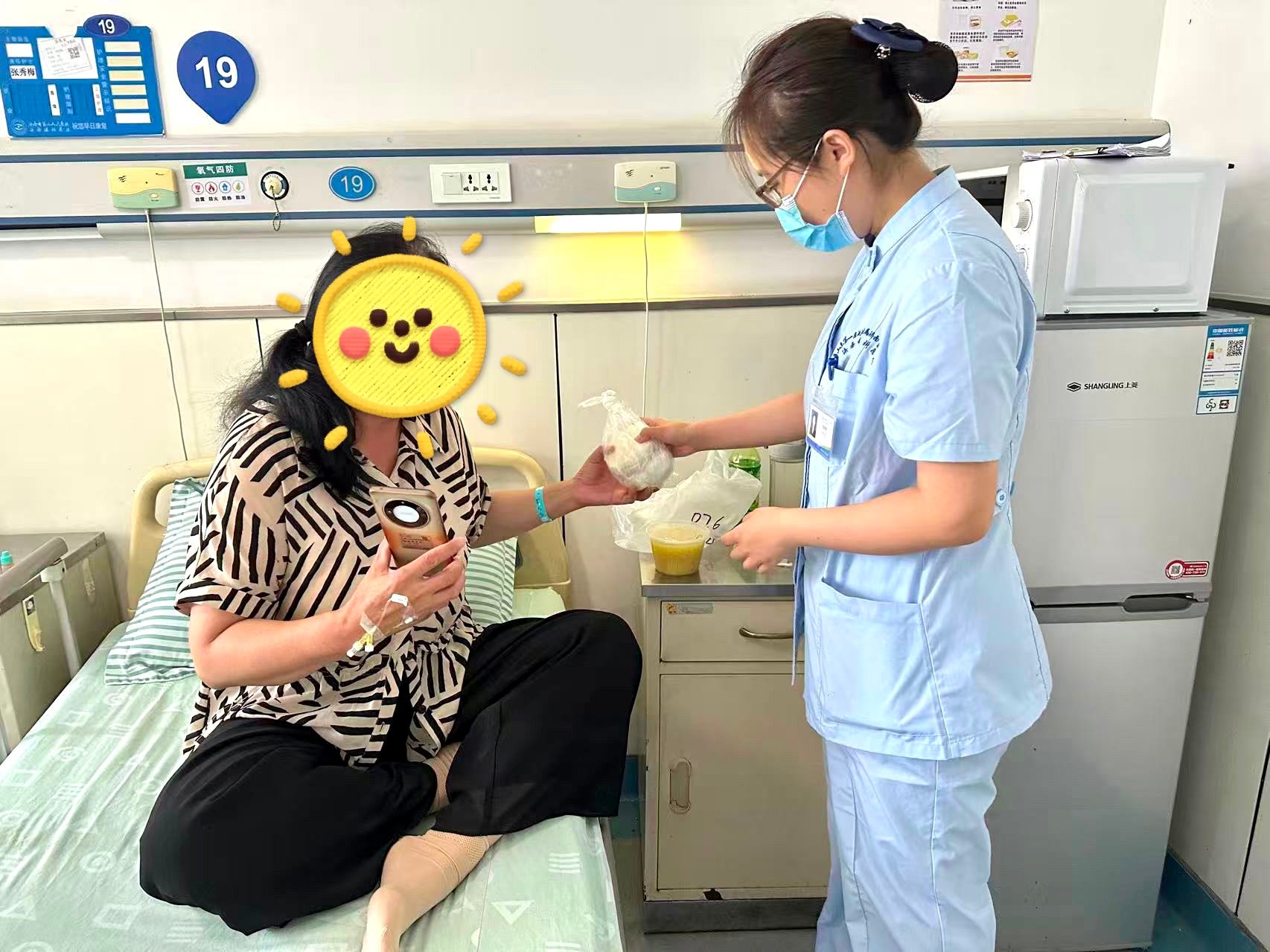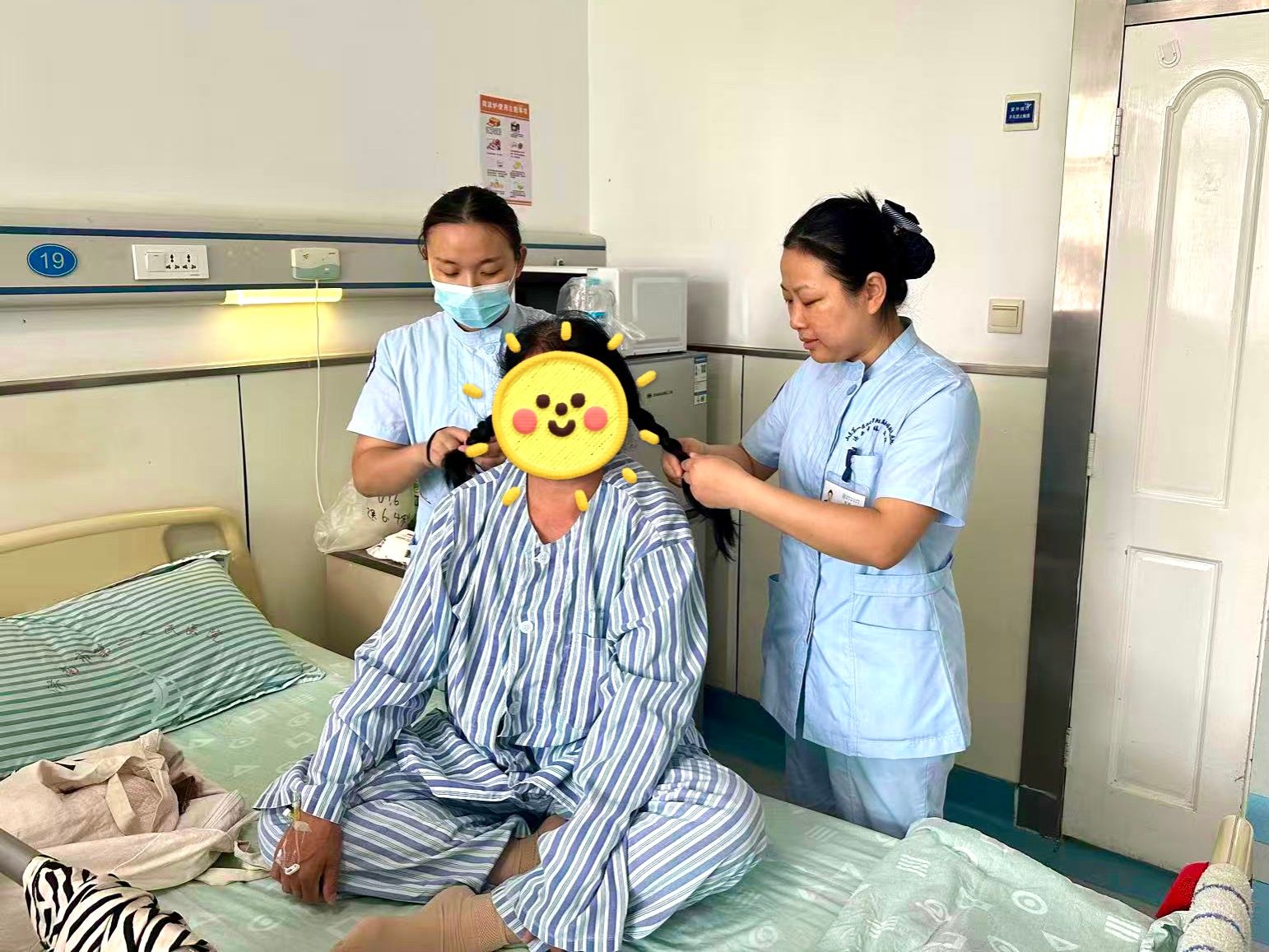 手术前,护士们细致地为李阿姨做好各项术前准备,为了让李阿姨做手术时平躺舒服,责任护士又为她轻轻梳拢头发,灵巧地扎起两根小辫子。护士们打水买饭,如家人般照顾着李阿姨。李阿姨声音微颤,眼中竟有了湿润:“哎呀,太谢谢你们了,你们这么细心热情,跟亲人似的,我这心里一下子踏实多了。”她原本紧绷的心弦,在亲如家人的照料中一点点松缓下来。