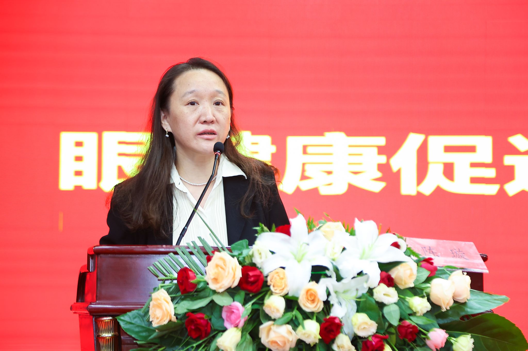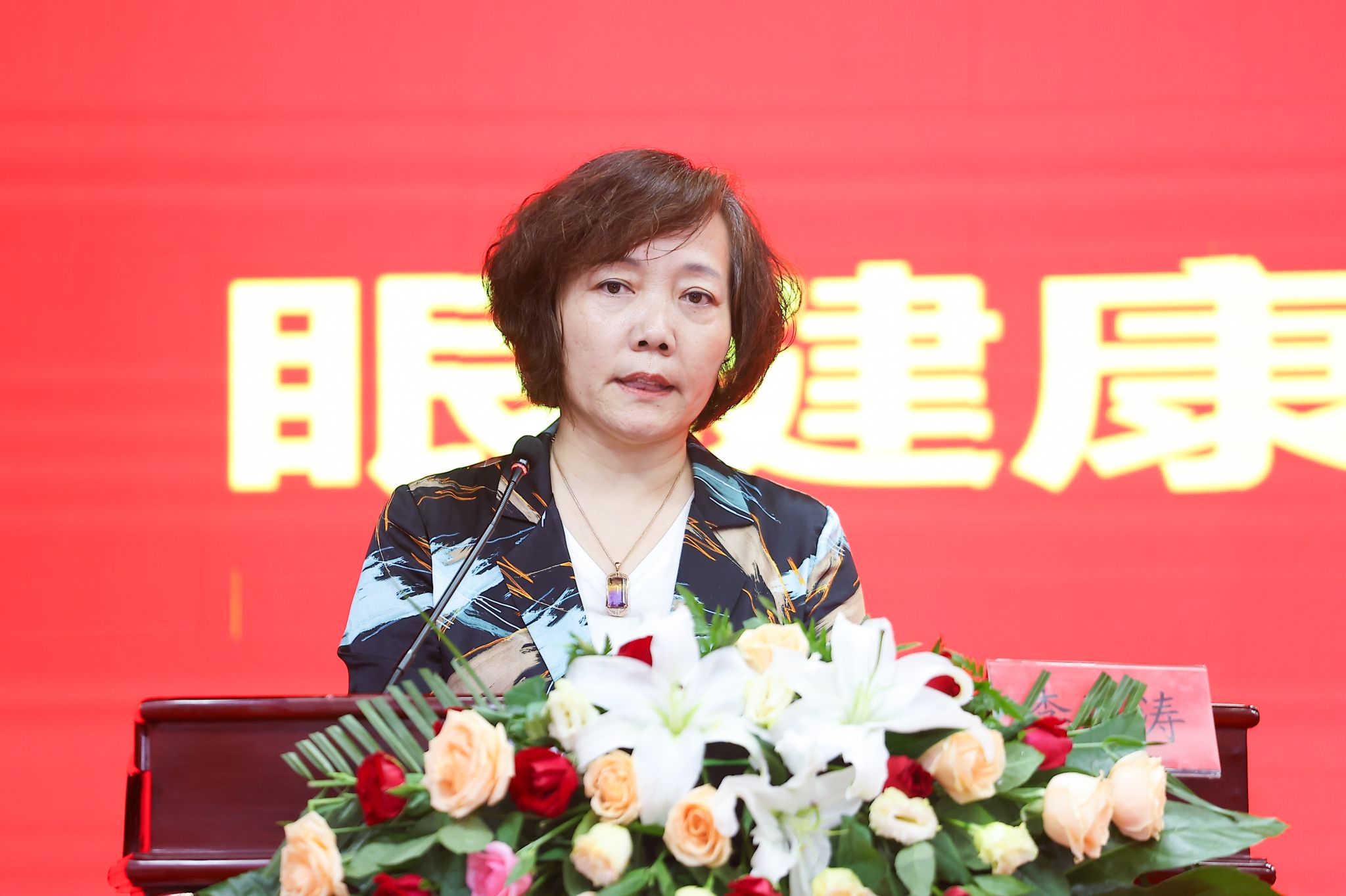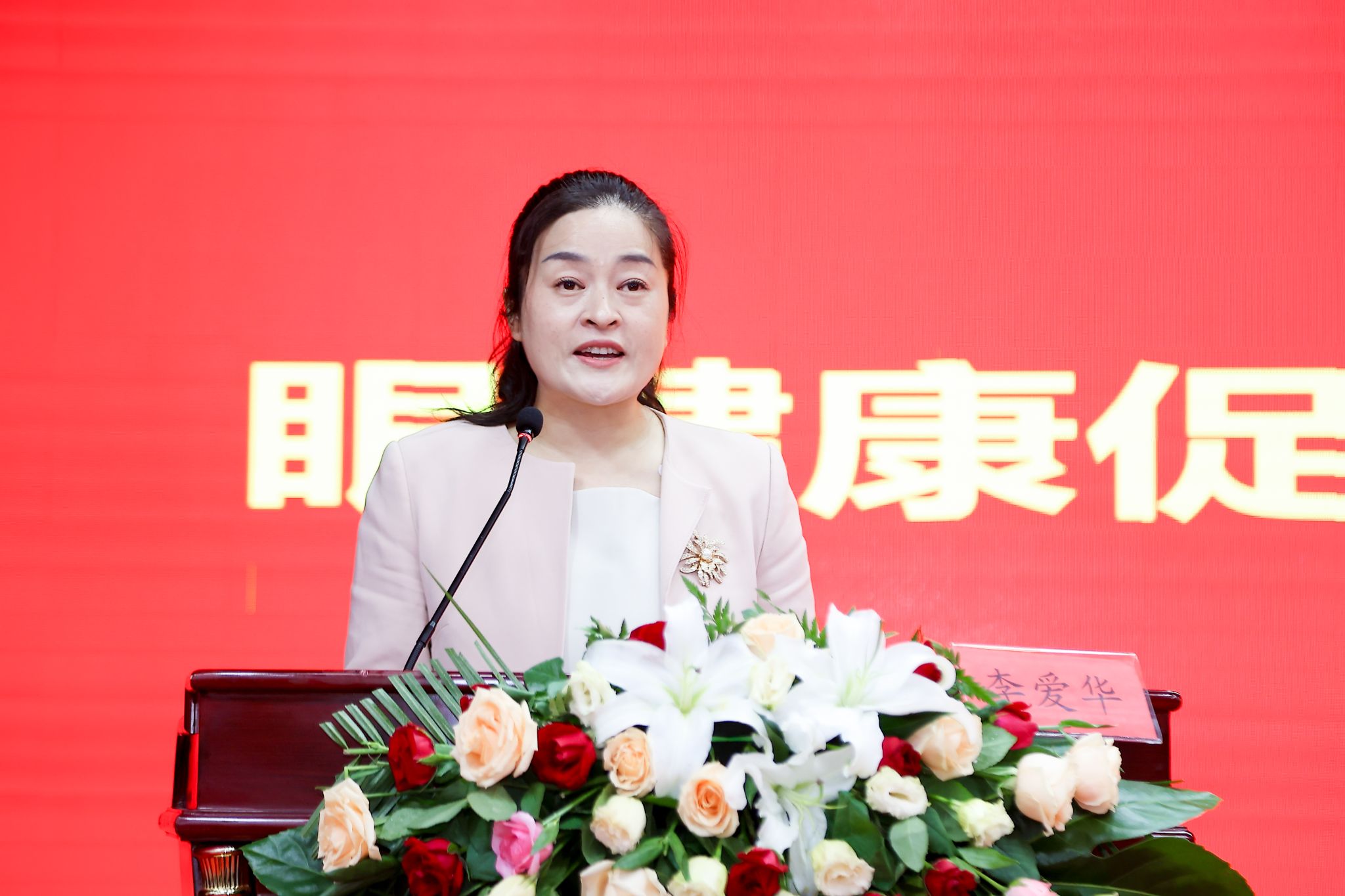 济南市卫生健康委医政处二级主任科员何亚丽在会上致辞。她充分肯定了济南市康复医学会在推动眼健康事业发展方面所做的努力,并对新成立的眼健康促进与康复专业委员会提出了期望和要求。希望专委会能够充分发挥专业优势,加强行业自律,积极开展学术交流和科普宣传活动,提高公众的眼健康意识,为济南市眼健康事业的发展做出更大贡献。