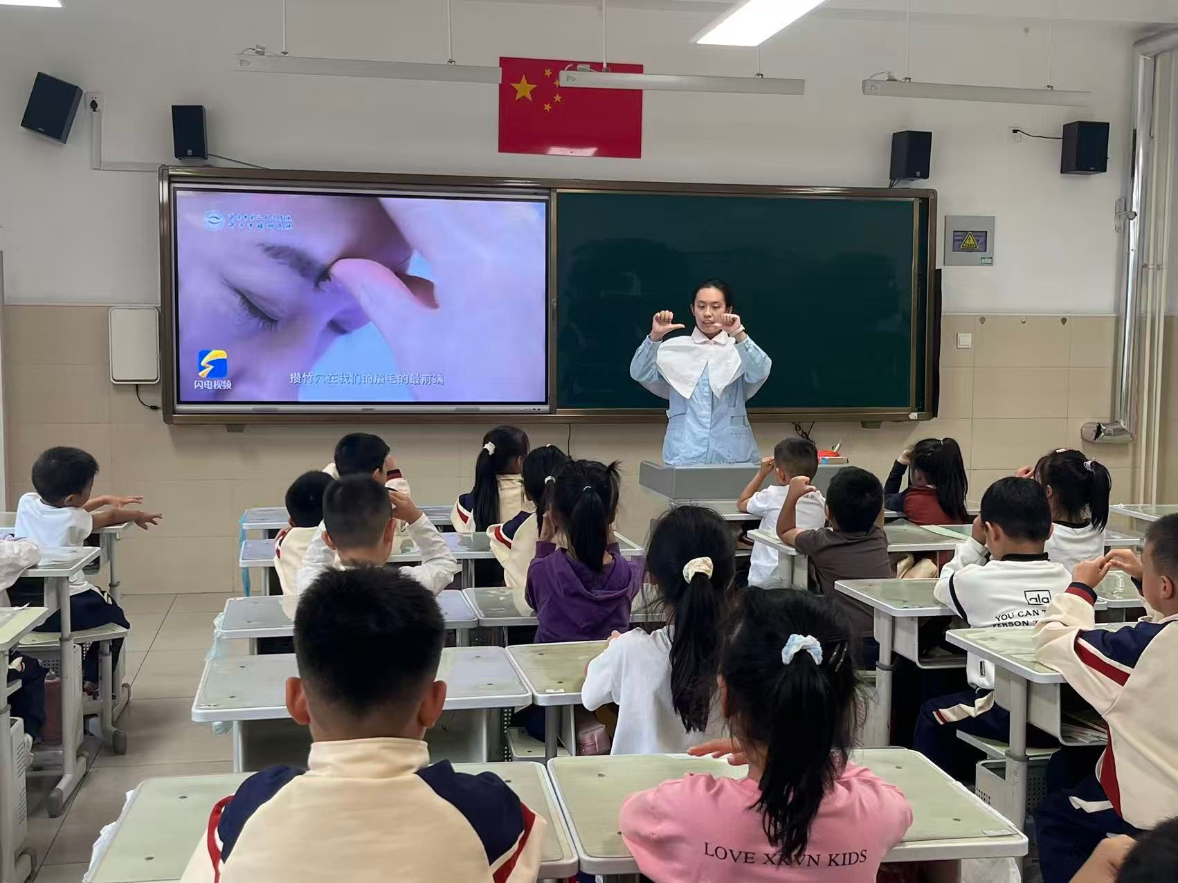 )“护瞳行动”志愿服务队走进济南市胜利大街小学、天桥区枫景小学等5所小学,开启“眼保健操培训月”活动,为刚刚步入小学的孩子们筑牢视力健康防线。
