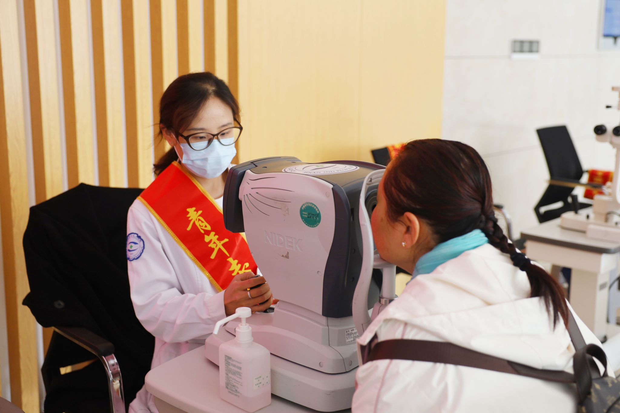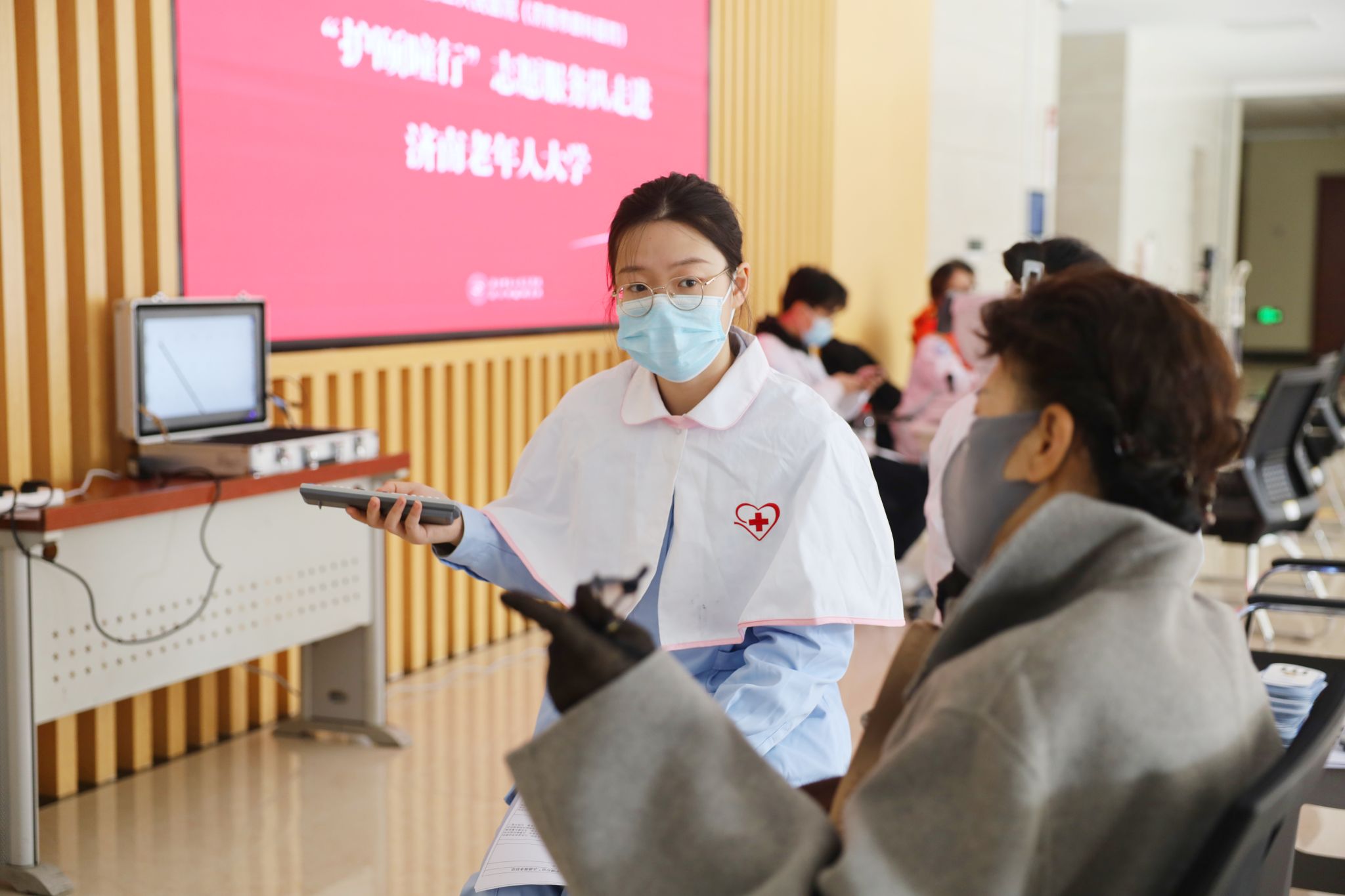 )充分发挥百年眼科的深厚专业积淀,离退休职工管理科联合门诊部和团委于10月24日组织“护颐瞳行”志愿服务队走进济南老年人大学,开展了以“爱在重阳·敬老助老送健康”为主题的眼健康义诊活动,将专业、温暖的医疗服务送至广大老年学员身边。
