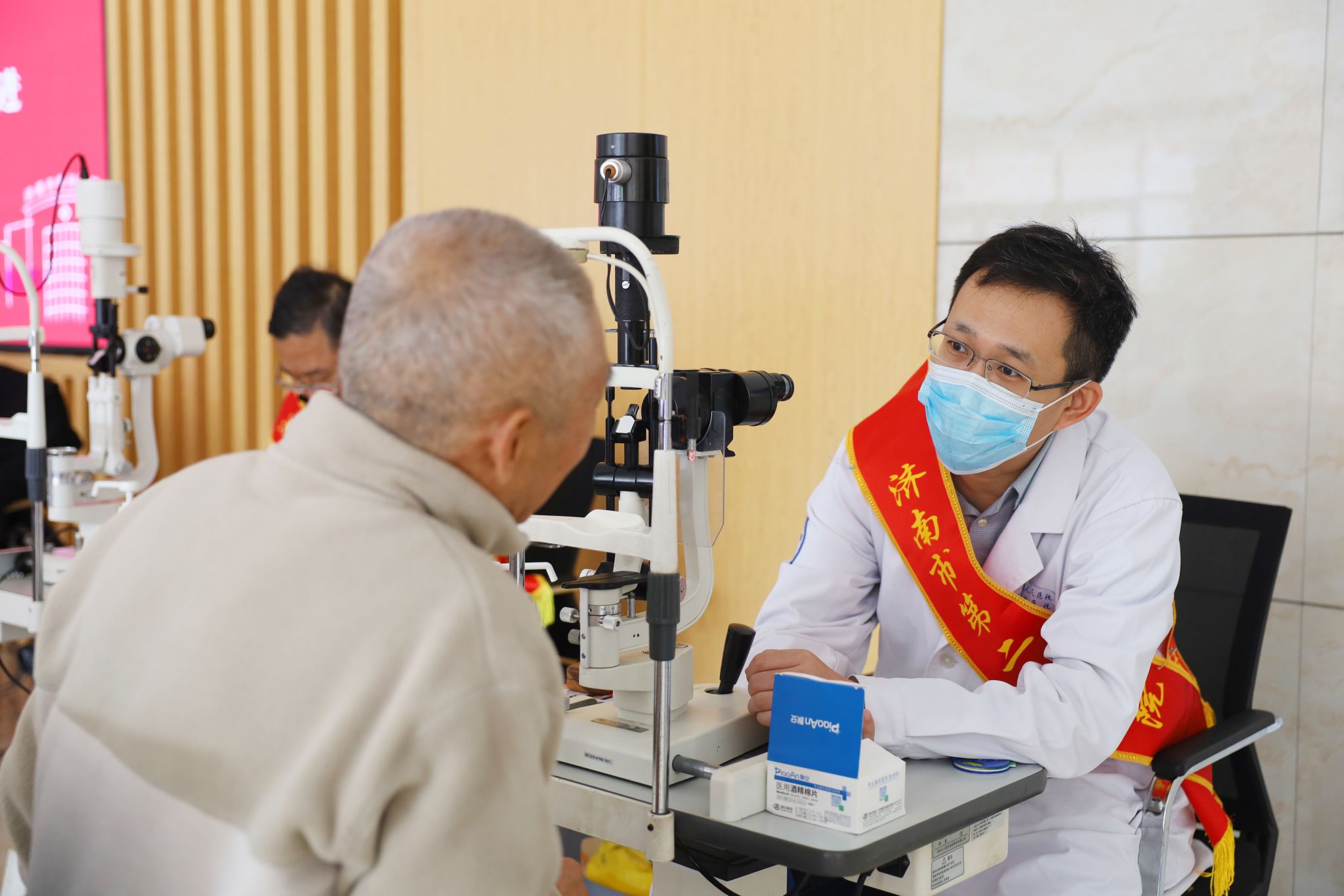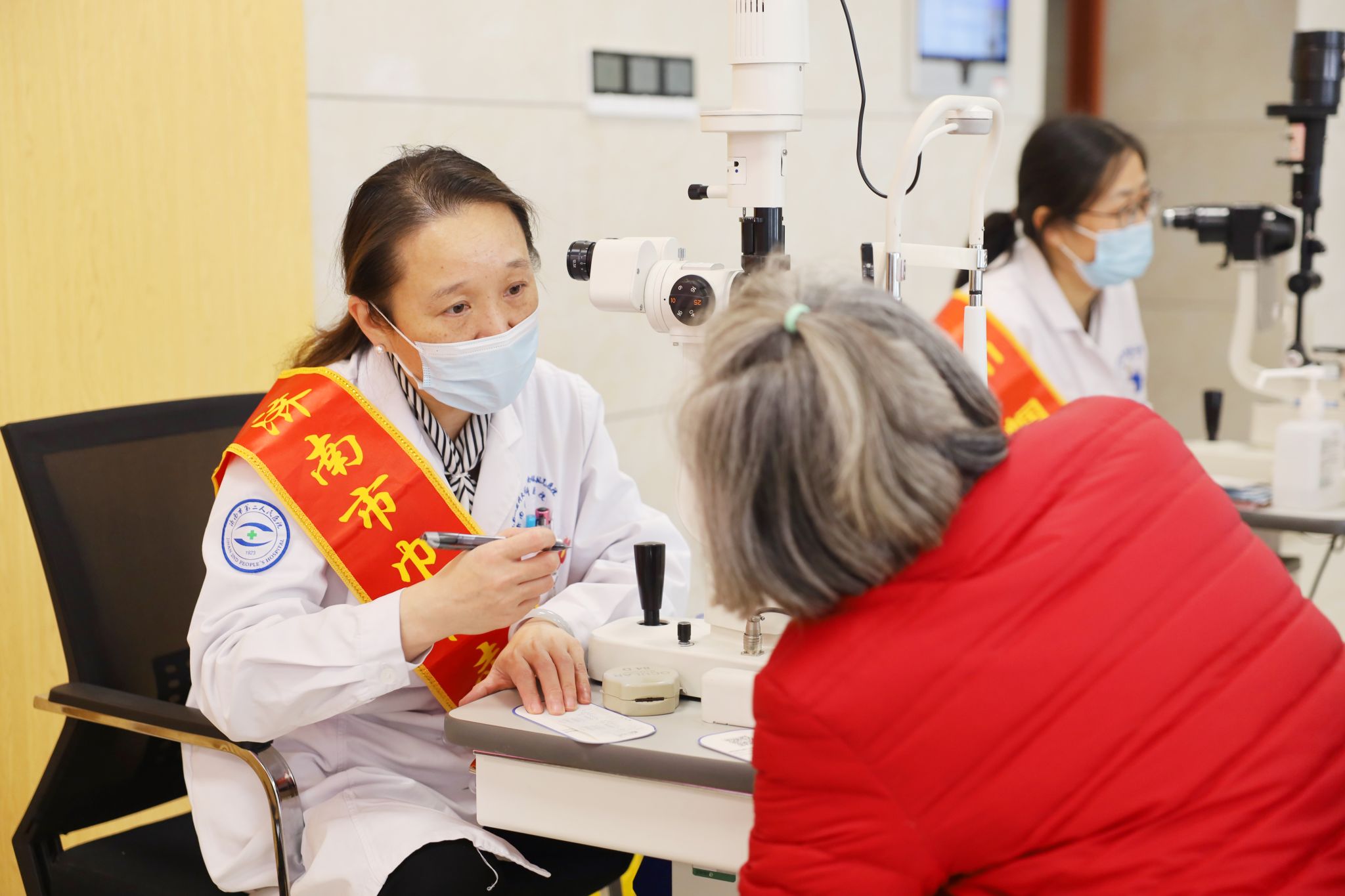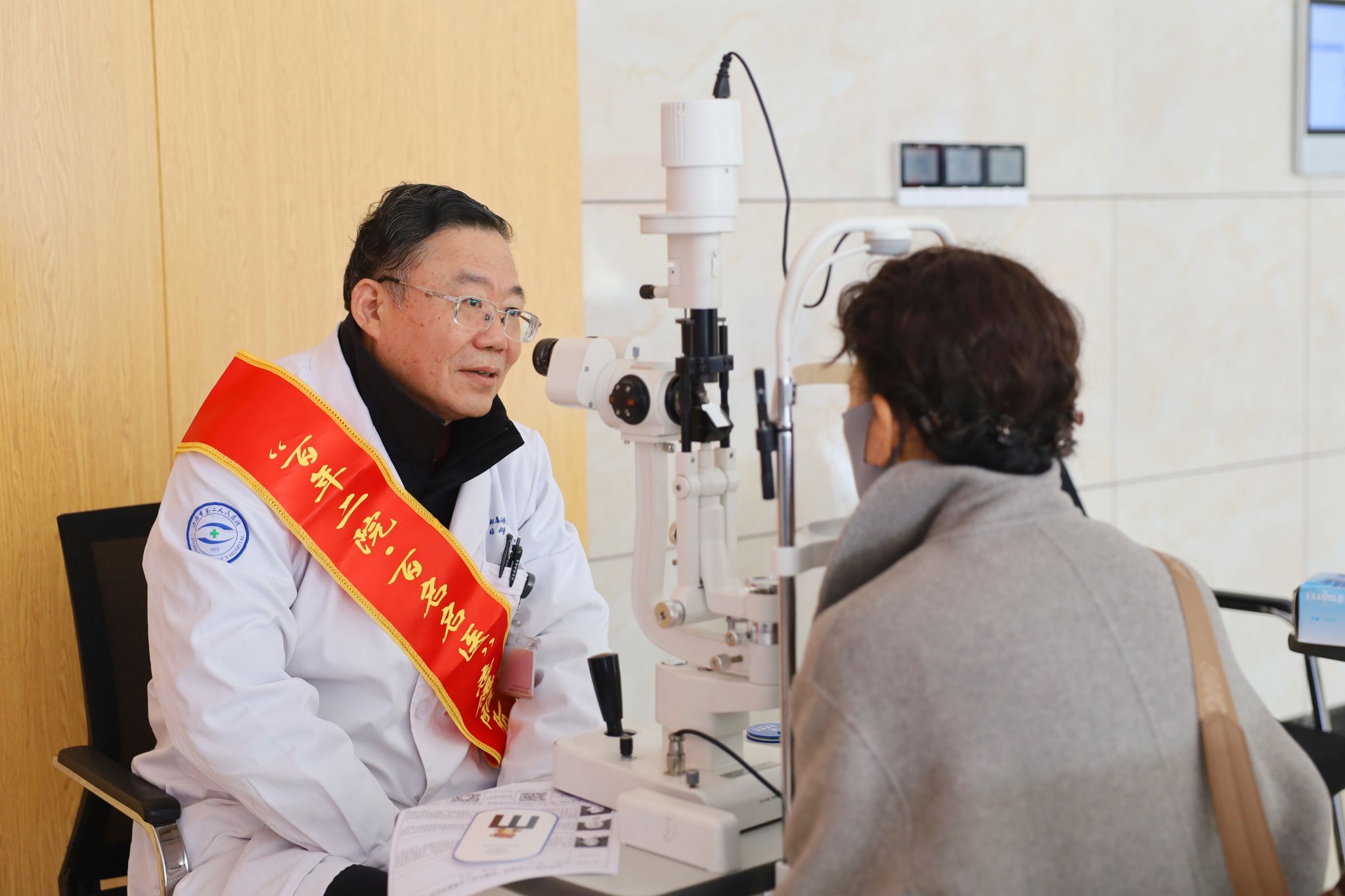 作为医院“敬老月”系列公益活动的重要组成部分,本次义诊于上午9点30分正式开始,现场气氛温馨而有序。医院副院长、眼科主任医师陈璇,眼底病专业主任医师、退休返聘专家谭瑞礼和眼八科(眼内科)负责人、副主任医师黄超带领医护人员,为老年学员带来全面细致的眼健康服务。