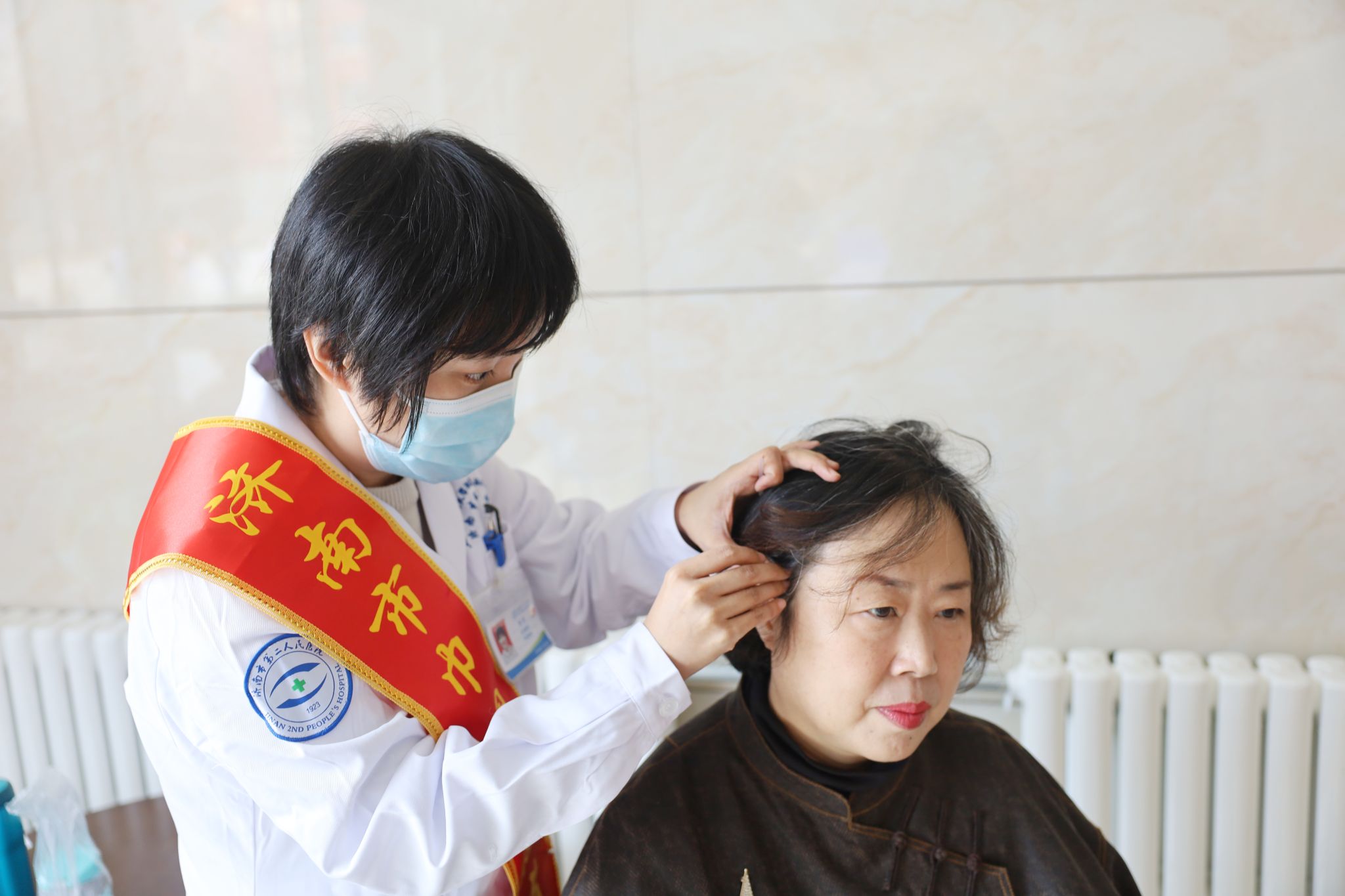 活动中,中医眼科特色体验环节备受关注。眼十科(中医眼科)主治医师杨奕为学员们现场演示并实施了耳穴压豆与颊针疗法,通过中医外治手法疏通经络、调节气血,在缓解眼部不适的同时,也有助于改善睡眠、调节血压,获得老年朋友的广泛好评。
