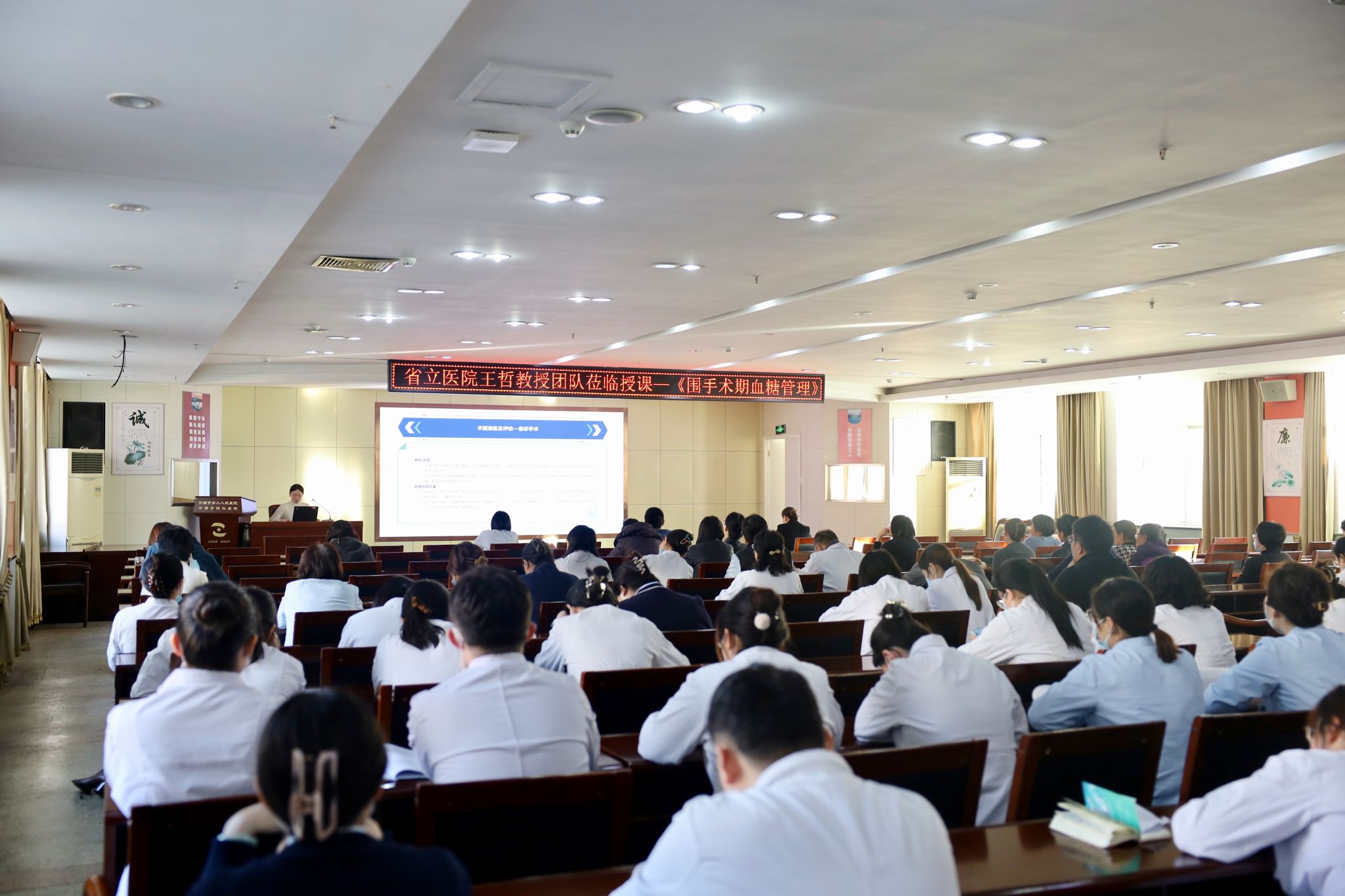 签约仪式后,王哲教授就“糖尿病患者围手术期血糖管理”课题进行了专题讲座,内容翔实、前沿且极具实践指导意义,医院将以此次合作为契机,充分发挥双方优势,加强专科建设、人才培养和学术研究,为保障市民身体健康提供更坚实的医疗保障。下一步,医院将及时公布专家进行临床指导时间、预约方式等信息,方便市民就医咨询。