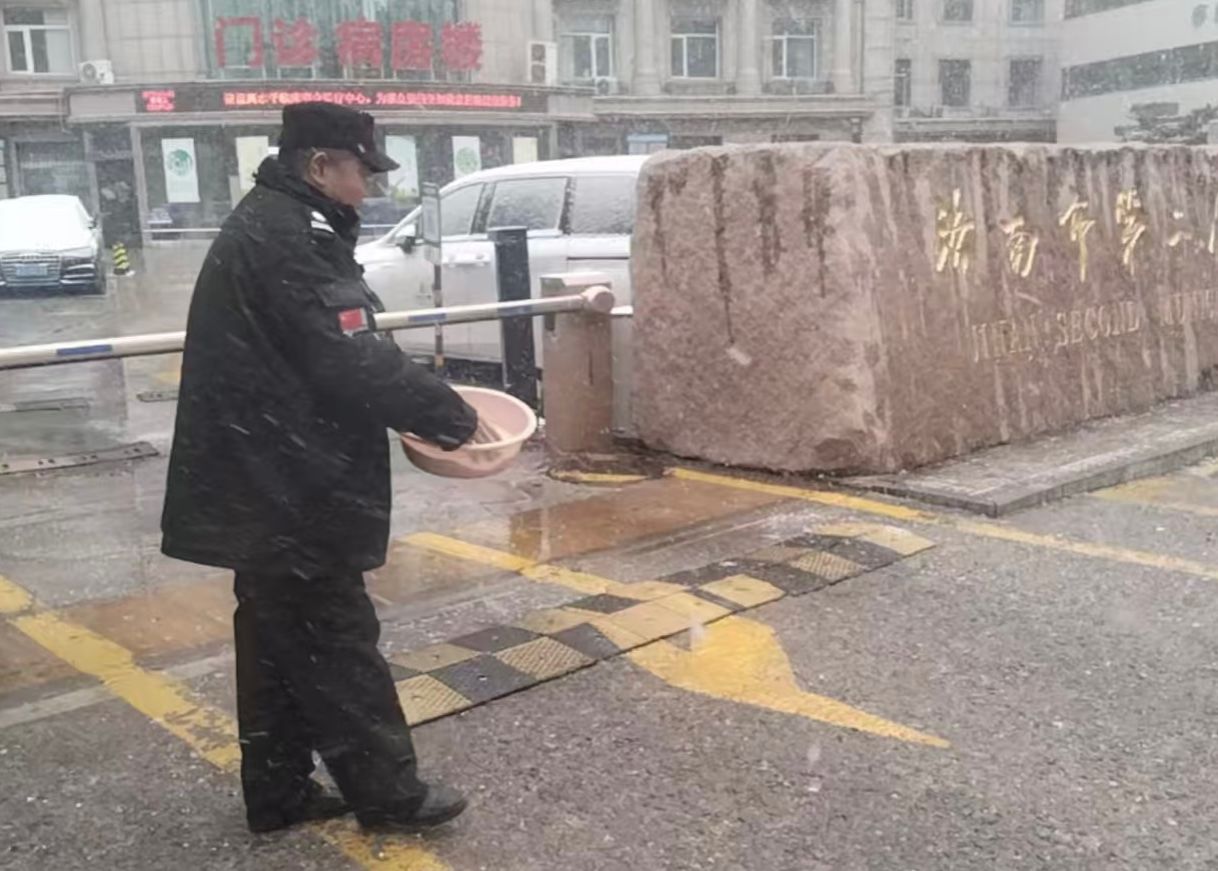 )迅速启动应急预案。12日傍晚至今晨,医院各部门工作人员连夜开展扫雪融雪行动。