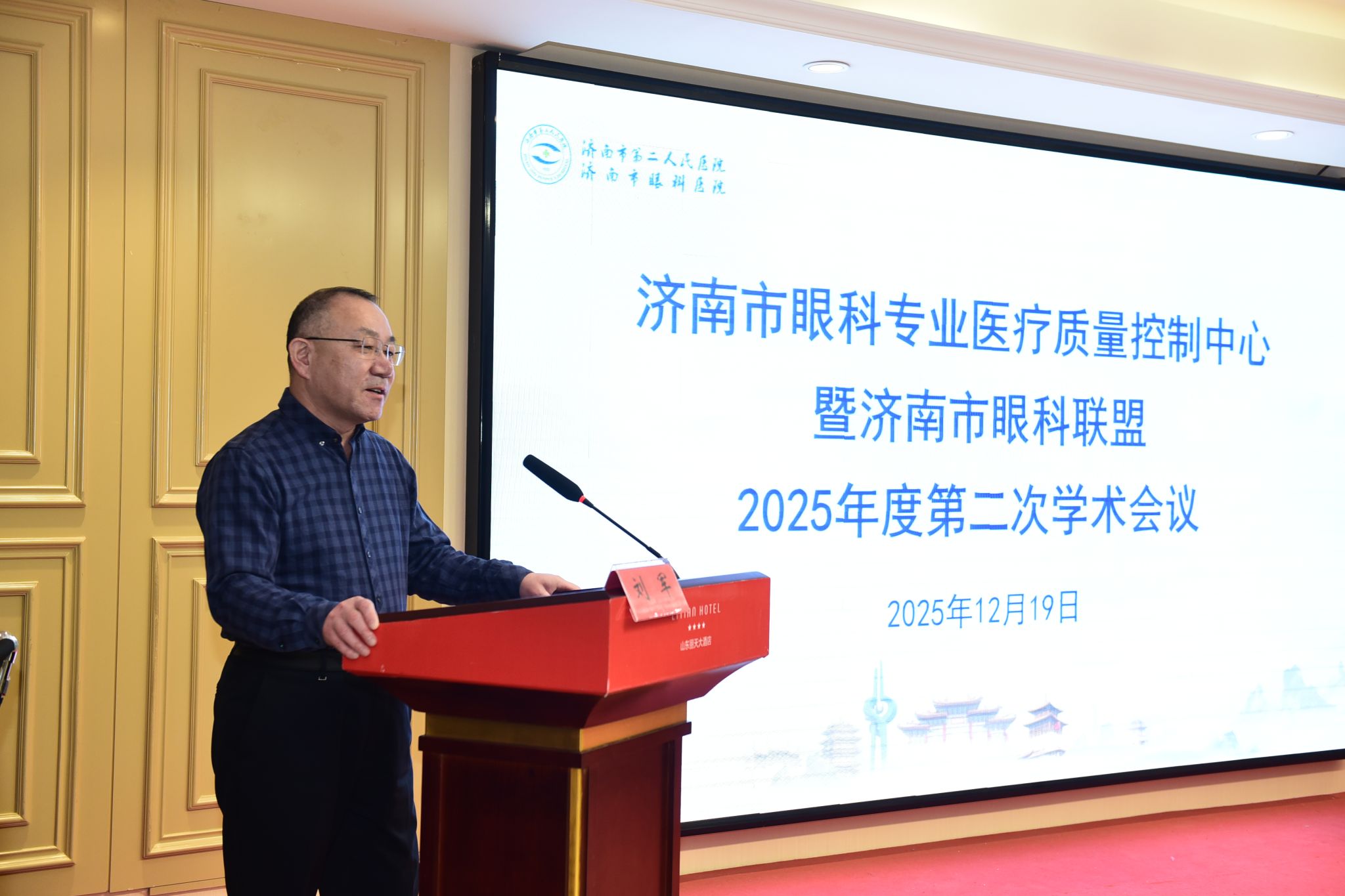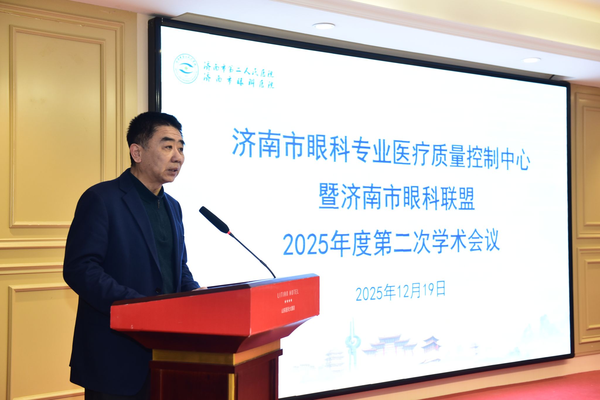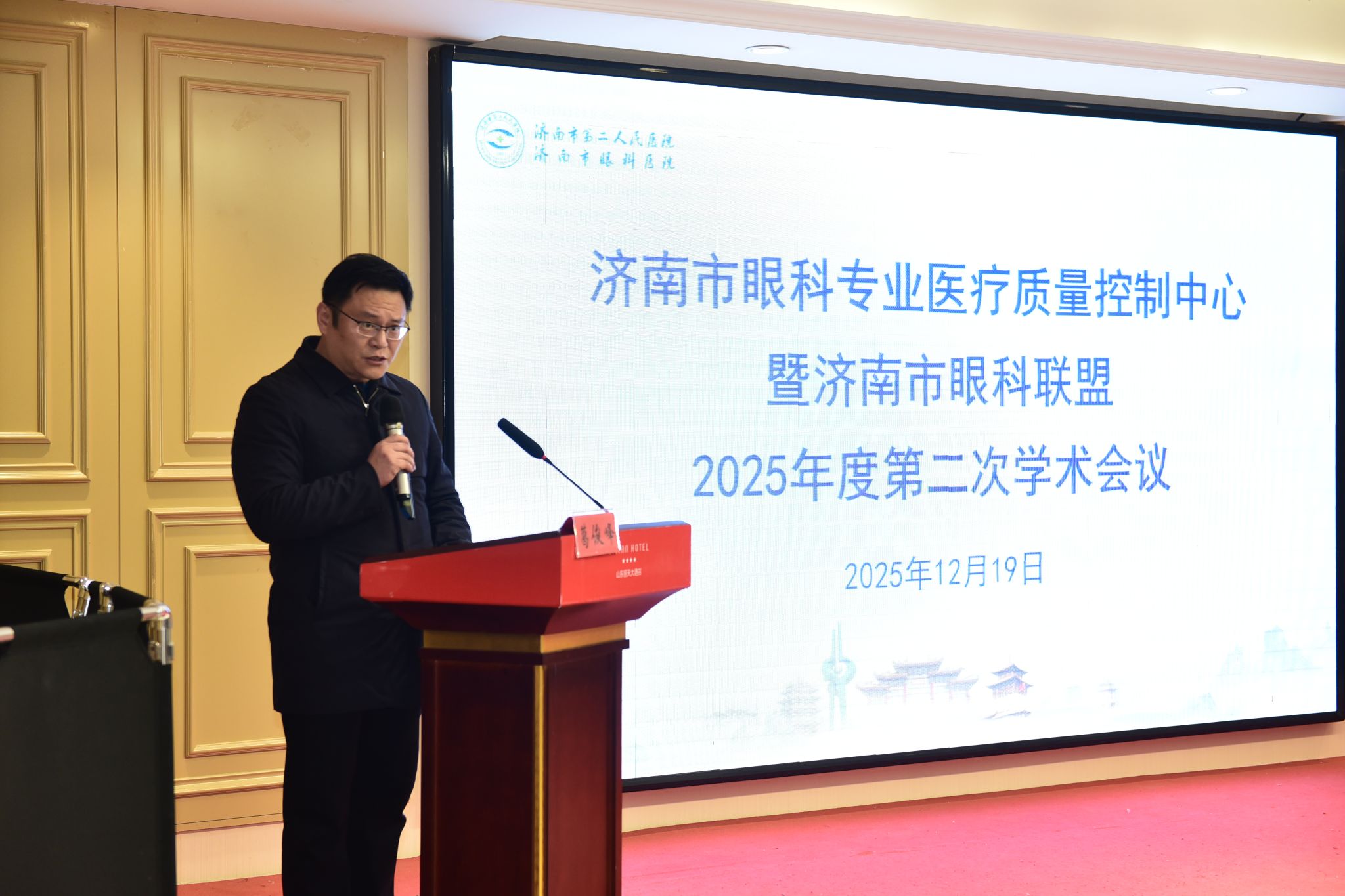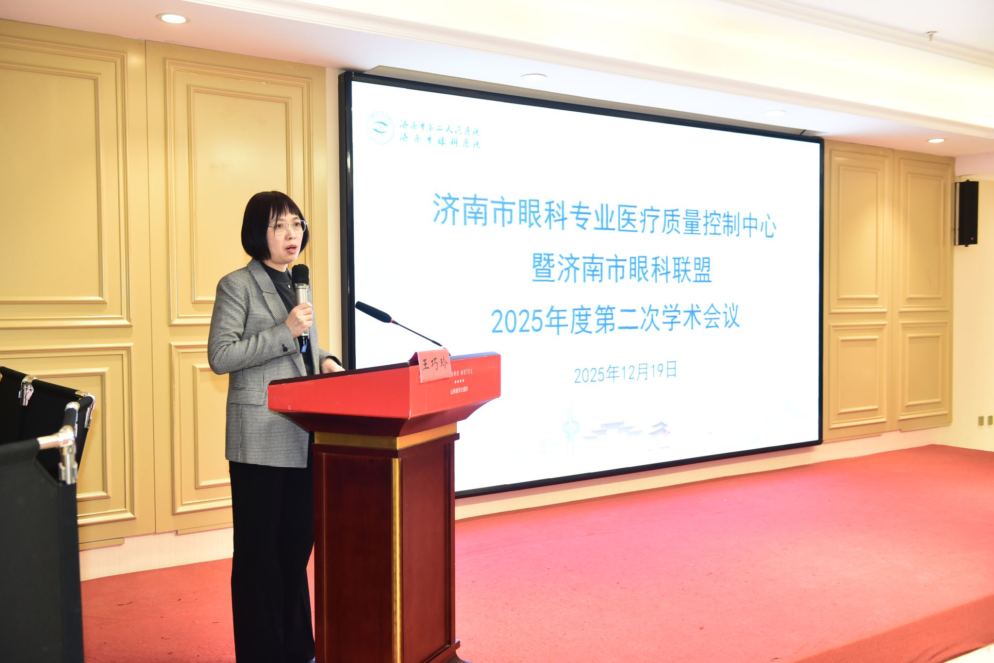 随后,市眼科医院(市二院)医务科主任葛俊峰、市眼科质控中心秘书王巧玲分别对济南市眼科联盟、济南市眼科质控中心2025年工作进行全面总结,系统梳理了联盟在分级诊疗、人才培养、近视防控等领域的丰硕成果,以及质控中心在规范诊疗流程、强化质量监管、开展督导检查等方面的扎实举措。
