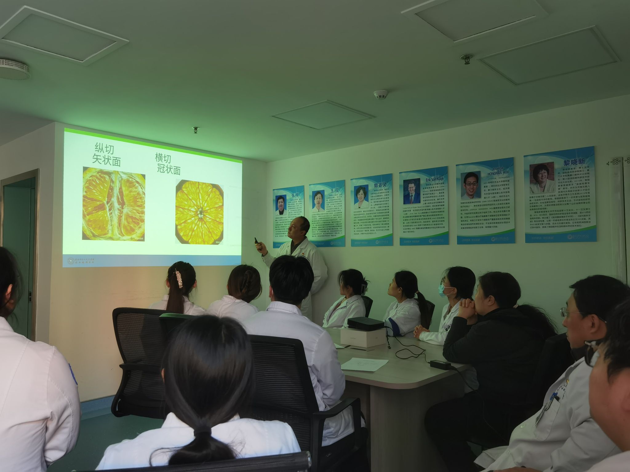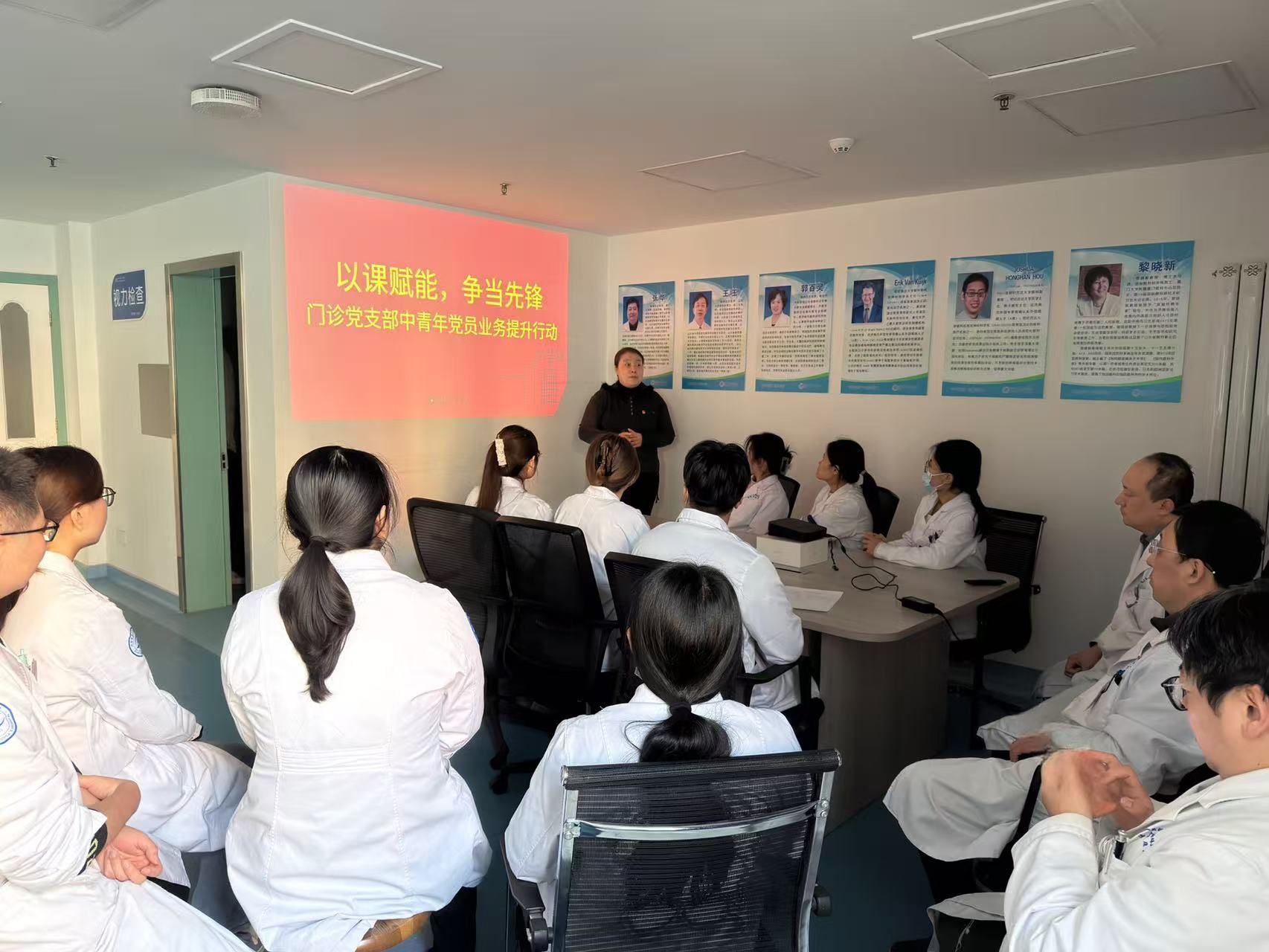 )眼科门诊VIP诊室内暖意融融、学风浓厚,门诊党支部“‘以课赋能,争当先锋’中青年党员业务提升行动”首讲圆满开讲。门诊支部委员、眼科特检科业务骨干及实习学生齐聚一堂。