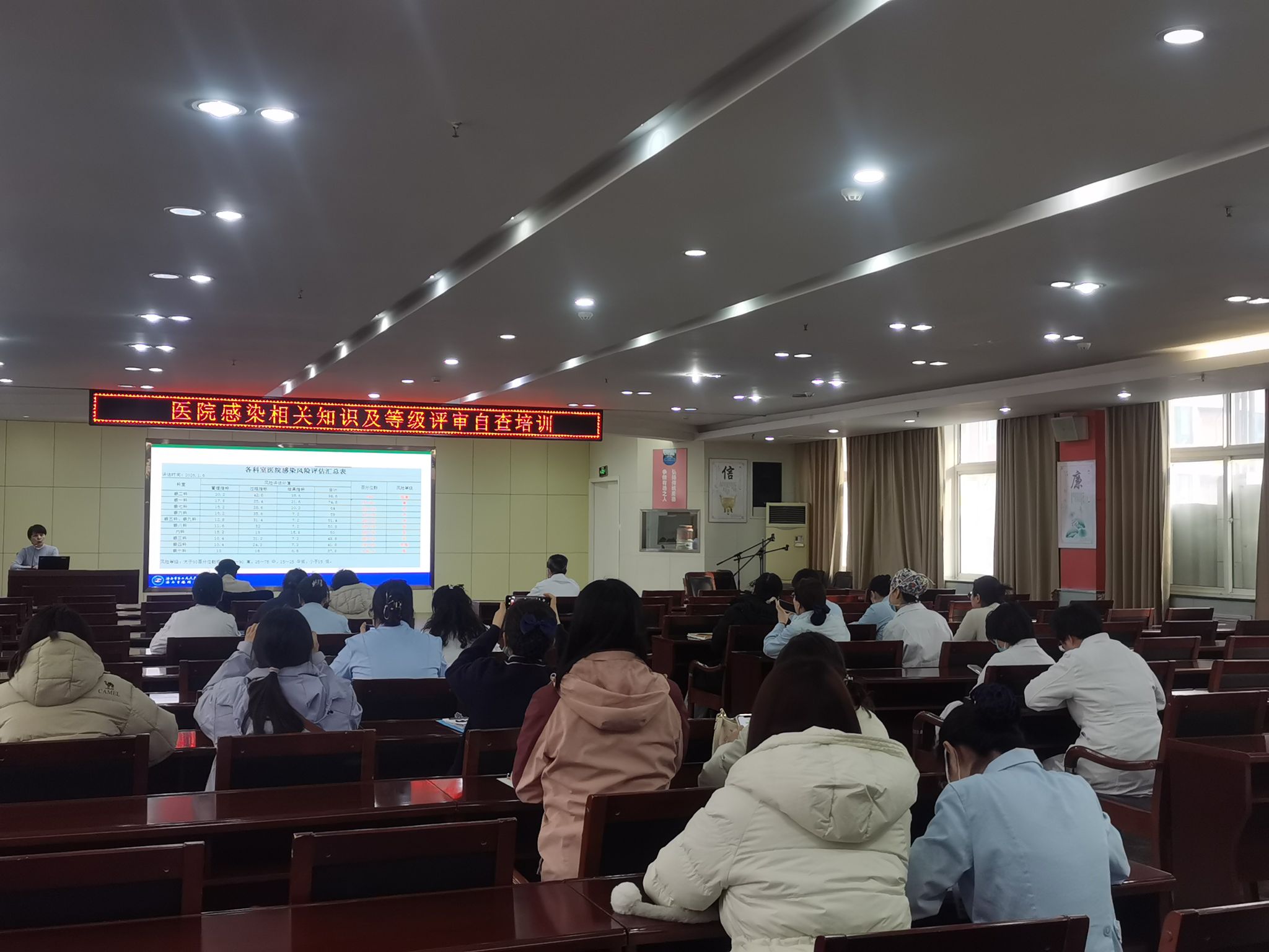 )在门诊病房楼七楼大会议室组织开展医院感染相关知识培训,相关岗位人员参训,切实筑牢医疗安全第一道防线。