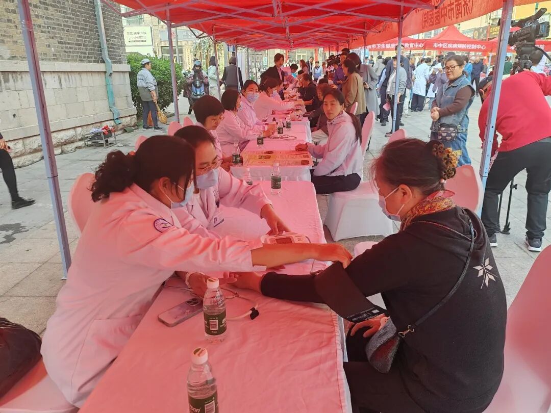 )组织医疗团队,在市中区魏家庄街道民康里新时代文明实践广场参与公益义诊与健康科普宣传活动,将专业眼健康服务与内科基础病筛查送到群众身边,以实际行动助力全民健康素养提升。