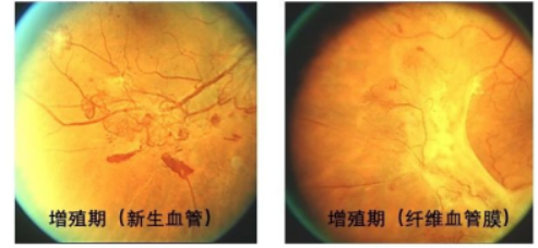 说到糖网的症状和表现,临床上分为两种类型:非增殖性和增殖性两种。早期糖网为非增殖性,病变一般由视网膜中周部开始,此时对视力没有明显影响,患者通常不会有任何察觉,一般都是在体检时发现。当病情一发展到增殖期时,视网膜发生缺血缺氧性改变刺激新生血管的生长,当新生血管长入玻璃体时,就会引起玻璃体积血。如果出血量少时患者感觉眼前有漂浮物,如果出血量大,患者视力将急剧下降,一旦出现牵拉性视网膜脱离视力将明显下降甚至完全失明。