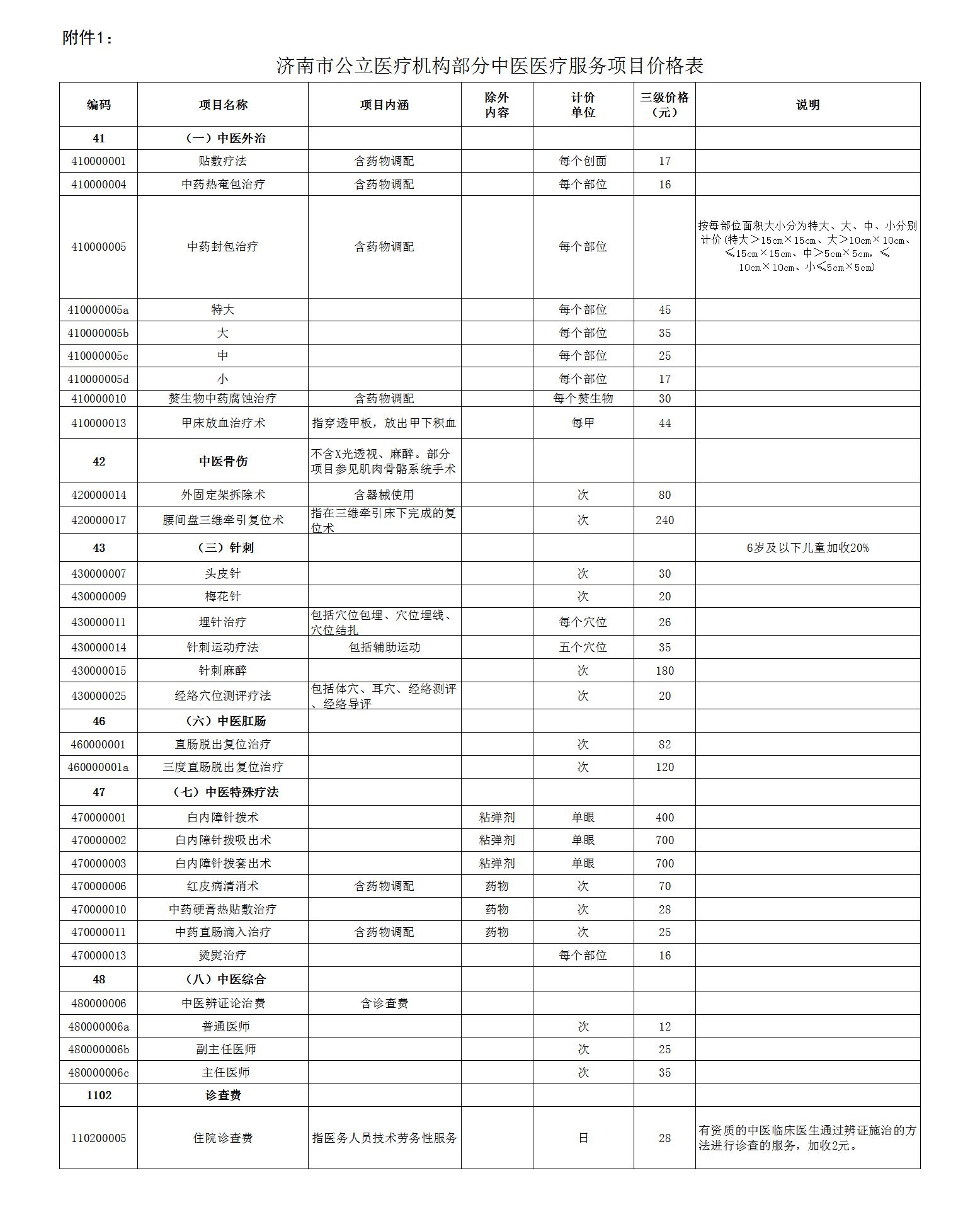 根据济南市医疗保障局《关于调整部分中医医疗服务项目价格的通知》济医保发〔2022〕19号文件,为支持中医药传承创新发展,促进国家中医药综合改革示范区建设,提升群众就医用药可及性,按照总量控制、结构调整、有升有降、逐步到位的原则,调整部分中医医疗服务项目价格(见附件),本通知自2022年12月1日起施行,有效期至2027年11月30日。