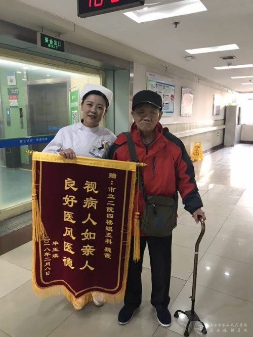 近日,济南市二院的病房里上演了温暖的一幕,一位腿脚不便的老人坚持亲手捧着锦旗送到市二院眼五科,以此来表达对眼五科护士魏霞的感激之情。 老人姓毕,今年七十多岁了,是一位两眼视力较差、行动不便... -