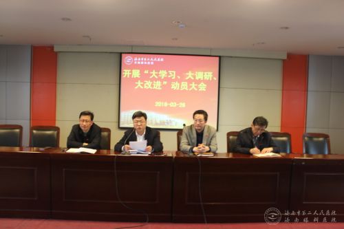 近日,济南市二院召开“大学习、大调研、大改进”动员大会,会议由党委书记牟鑫主持,院党委班子、中层干部及各党支部委员七十余人参加会议。 会议传达了市二院《关于开展“大学习、大调研、大改进”的... -