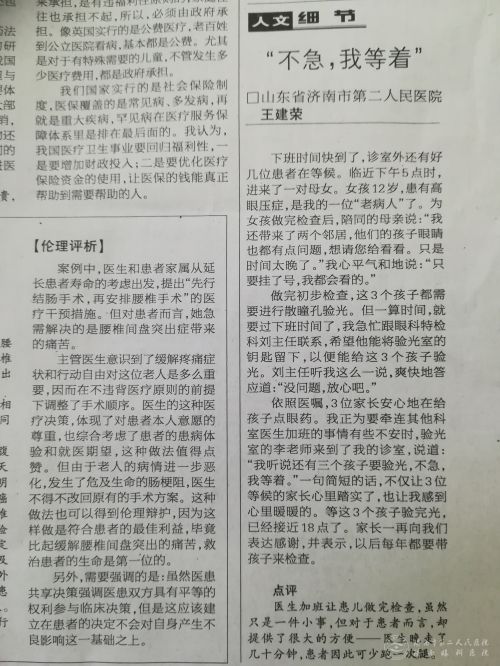 下班时间快到了,诊室外还有好几位患者在等候。临近下午5点时,进来了一对母女。女孩12岁,患有高眼压症,是我的一位“老病人”了。为女孩做完检查后,陪同的母亲说:“我还带了两个邻居,他们的孩子眼睛也都有点问题... -