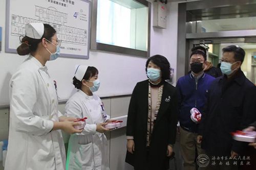 2月12日(正月初一)上午,云顶赌场app 院领导走访慰问了春节期间坚守岗位的干部职工。市二院党委书记吕丽萍、副院长张亚军、副院长王俊峰、副院长曹传洲、纪委书记李洁月参加慰问活动。 “辛苦了!... -