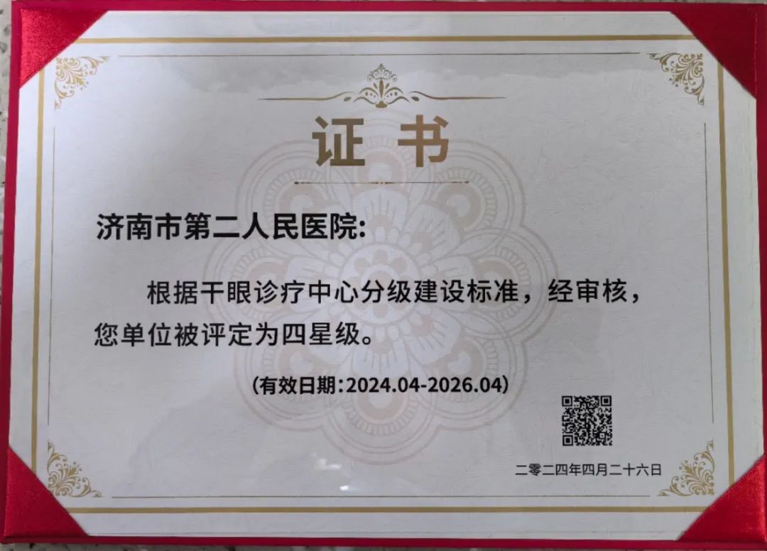 济南市二院干眼门诊获评国家级干眼诊疗中心